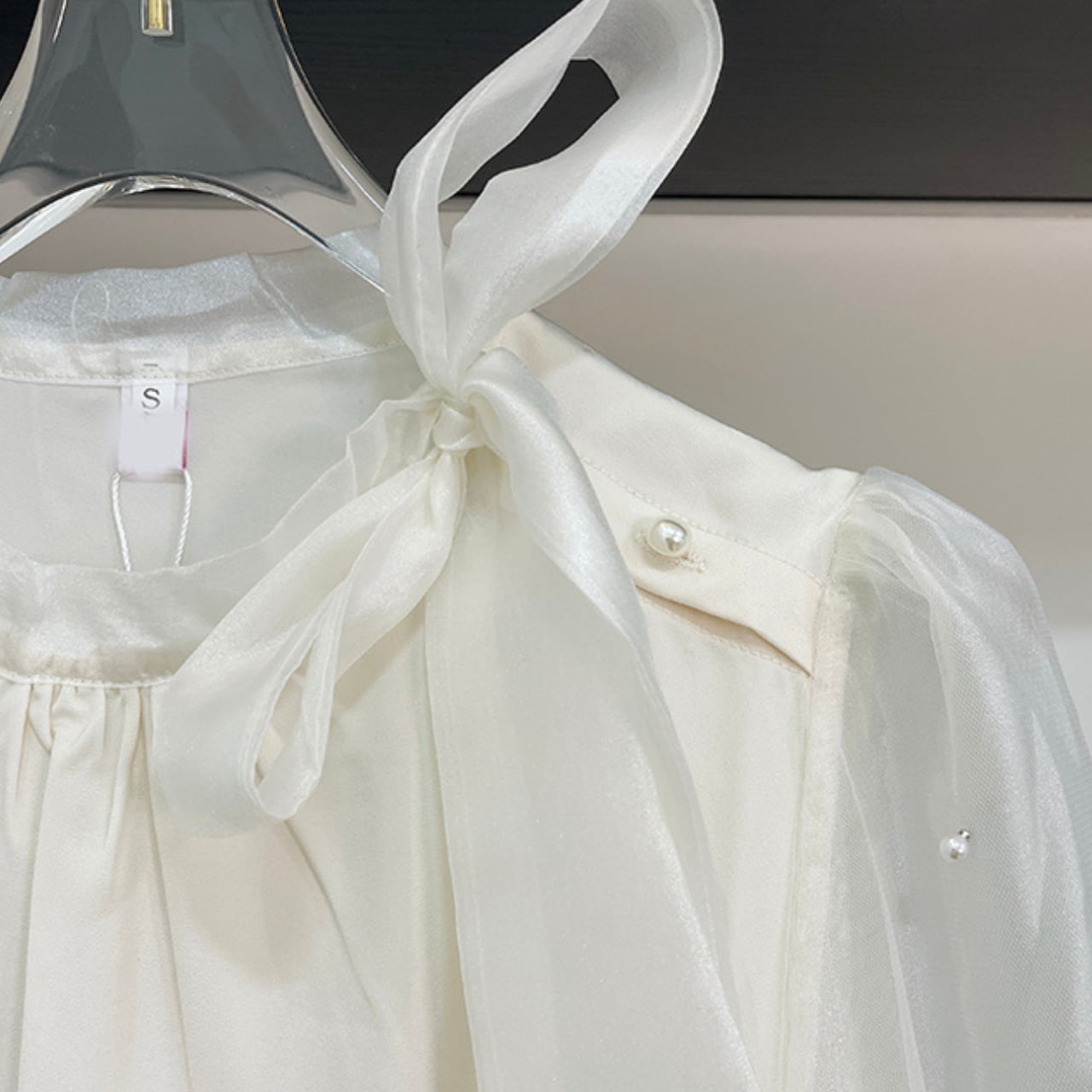 ひとさじの華やかさをプラスして、パール×リボンの上品ブラウスで、いつものコーデに“きちんと感”を。魅力的なリボンデザインときらりと輝くパールをあしらったブラウスです。清潔感のあるホワイトカラーは、カジュアルからフォーマルまで幅広いシーンで活躍します。質感の良い素材が肌に優しく、心地よい着心地を実現。リボンがさりげなく女性らしさを演出し、デイリースタイルや特別な日にもぴったりなアイテムです!自信を持って着こなしていただける一着です。