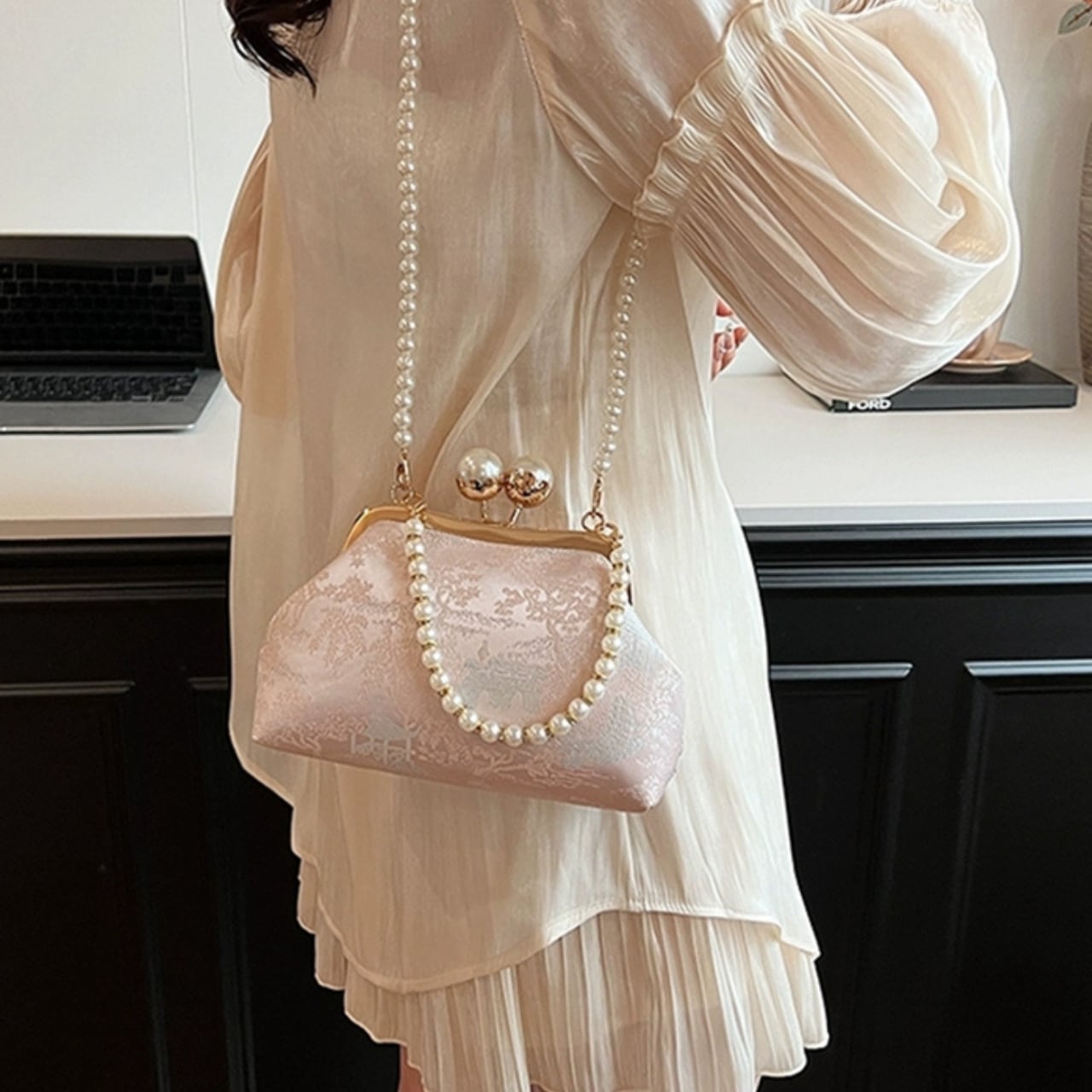 チャイナドレス パールチェーン ミニ バッグ ピンク 250311