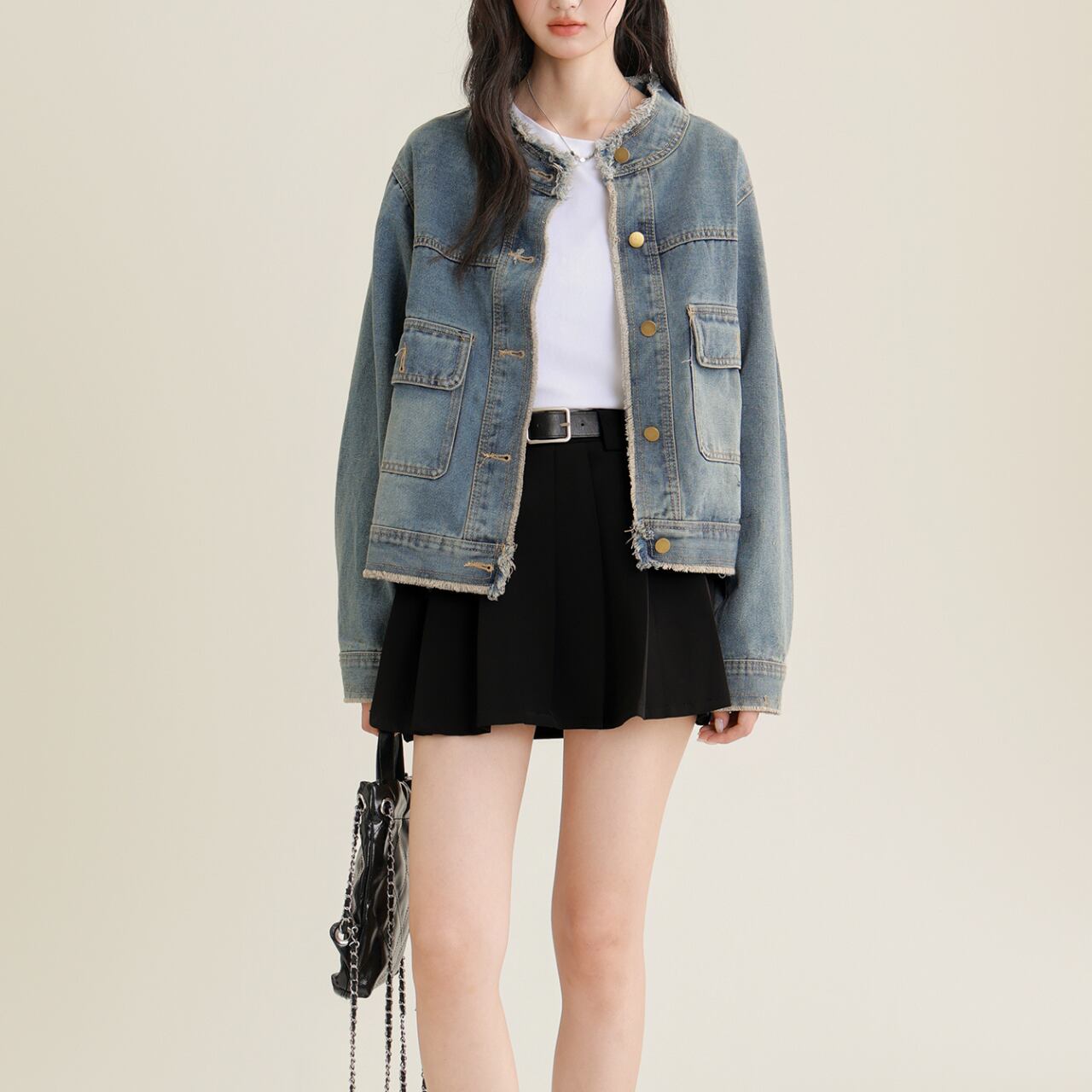 程よくフィットしたシルエットで、女性らしさも引き立てつつ、動きやすさも確保。ややオーバーサイズでトレンド感をプラスした、トレンド感満載のレトロなデザインが魅力のデニムジャケットです。柔らかなウォッシュ加工が施された生地は着心地が良く、ルーズなシルエットがリラックスした雰囲気を演出します。カジュアルなデニムスタイルから、スカートやドレスとのコーディネートまで、幅広いスタイリングを楽しむことができます。春秋のおしゃれなアウターとして、ぜひワードローブに加えてください!