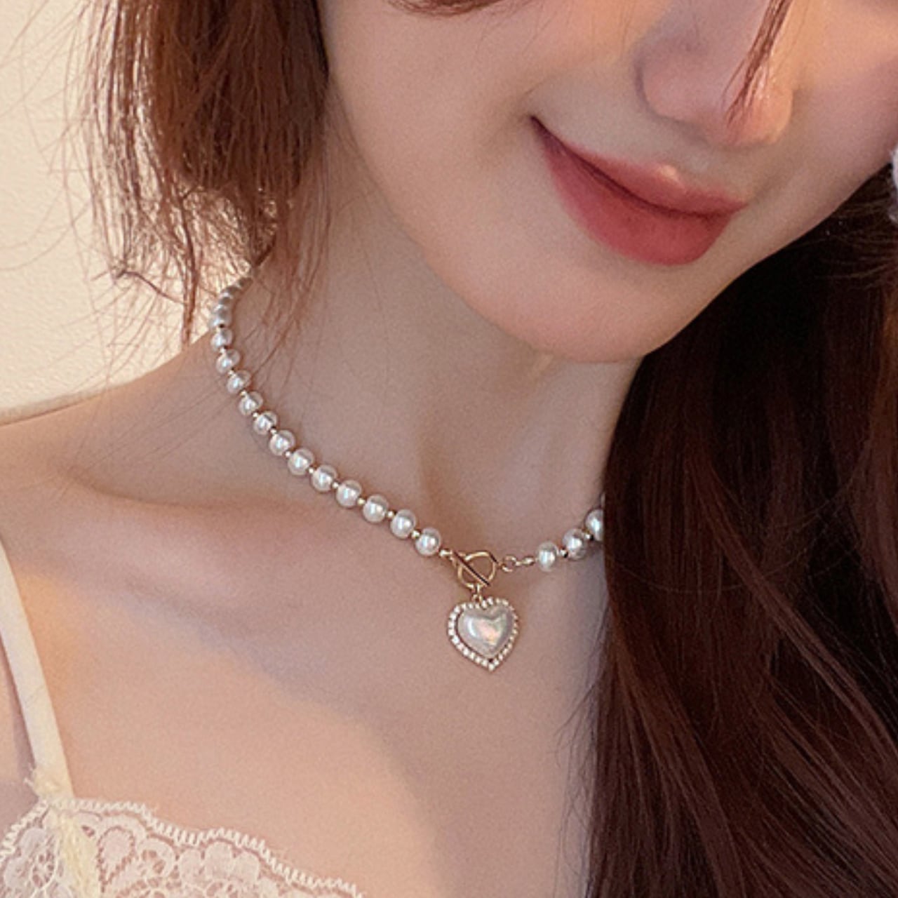 可愛らしいハート型のデザインが特徴的なパールネックレスです。優しい光沢のあるパールが胸元を華やかに彩り、デイリーから特別なシーンまで、様々なスタイルにマッチします。これからの季節には、このネックレスが特に映えます。ライトカラーのドレスやシャツに合わせると、軽やかで明るい印象に。花柄のワンピースや、フェミニンなスカートスタイルに合わせても素敵です。このネックレスが程よいアクセントとなり、全体的に華やかさを引き立てます。繊細なチェーンとシンプルながらも存在感のあるハートチャームは、女性らしさを引き立て、贈り物としてもおすすめのアイテムです!