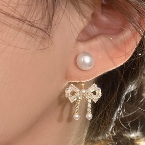ふんわりと結んだようなリボンモチーフに、上品なパールが寄り添う、大人可愛いを叶えるフェミニンピアス。小ぶりながらも存在感があり、コーデにほんのり甘さと輝きをプラスしてくれます。デートやお呼ばれはもちろん、カジュアルな日常にもアクセントとして活躍。どんなシーンにも寄り添う、アクセサリー感覚の万能アイテムです。合金素材は軽量でありながらも高級感があり、長時間着用してもストレスを感じにくいのが特徴です!このピアスで、あなたのコーディネートを一層引き立てることができるでしょう。