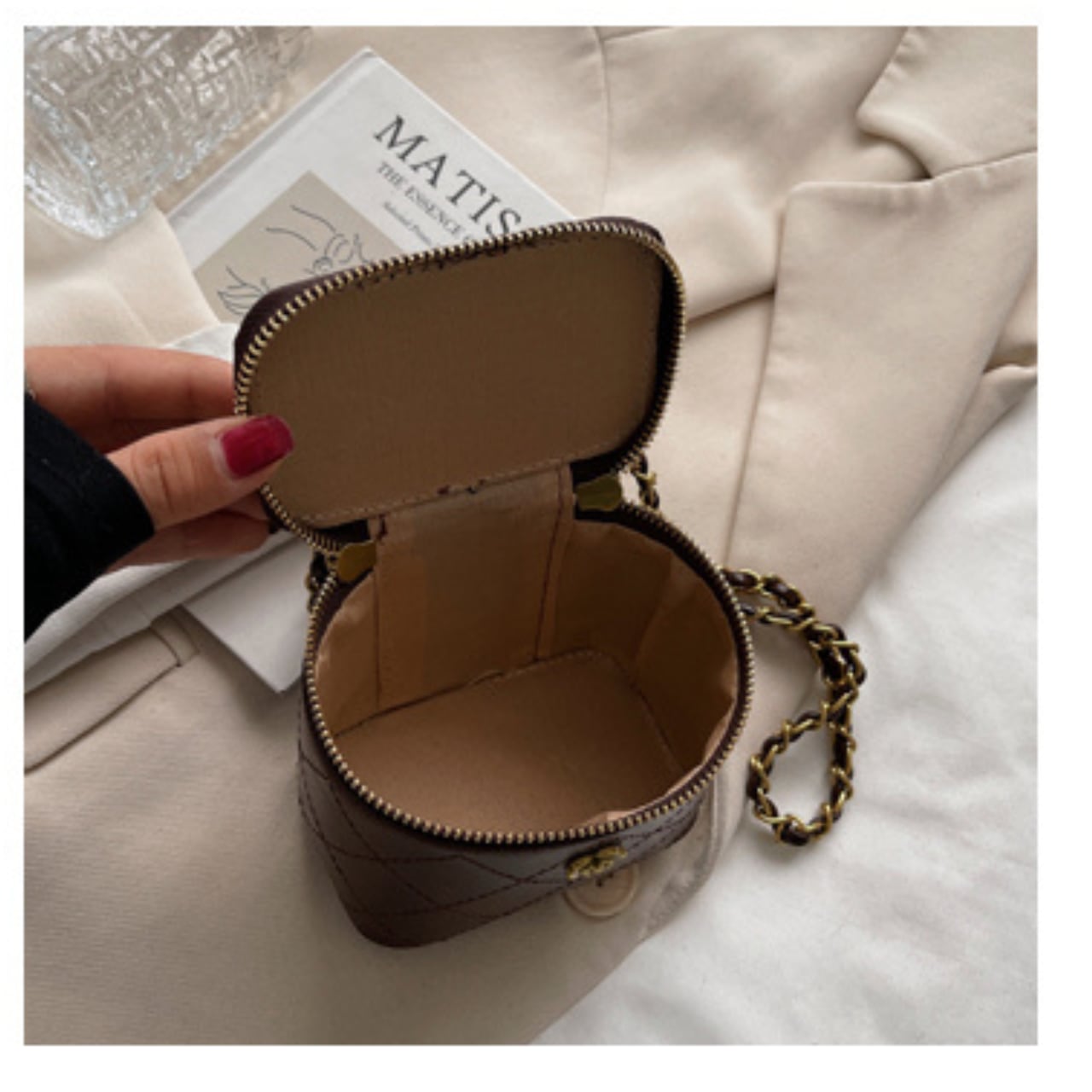 フロントのフラワーボタンが、上品さとフェミニンさをさりげなく演出。甘くなりすぎず、大人でも取り入れやすいデザイン。清潔感溢れるホワイトのミニバッグは、華やかなゴールドフラワーボタンとキルティングデザインによって、一際目を引く存在感を放ちます。高品質な合成皮革素材は、耐久性に優れており、カジュアルな日常使いから特別なシーンまで、幅広くご利用できます!エレガントなゴールドチェーンが付いており、スタイルに洗練された印象を与えてくれます。スクエア型の形状は収納力も兼ね備えており、必要なアイテムをしっかりと持ち運ぶことが可能です。このバッグは、あなたのコーディネートを引き立てる素敵なアクセントとなることでしょう。