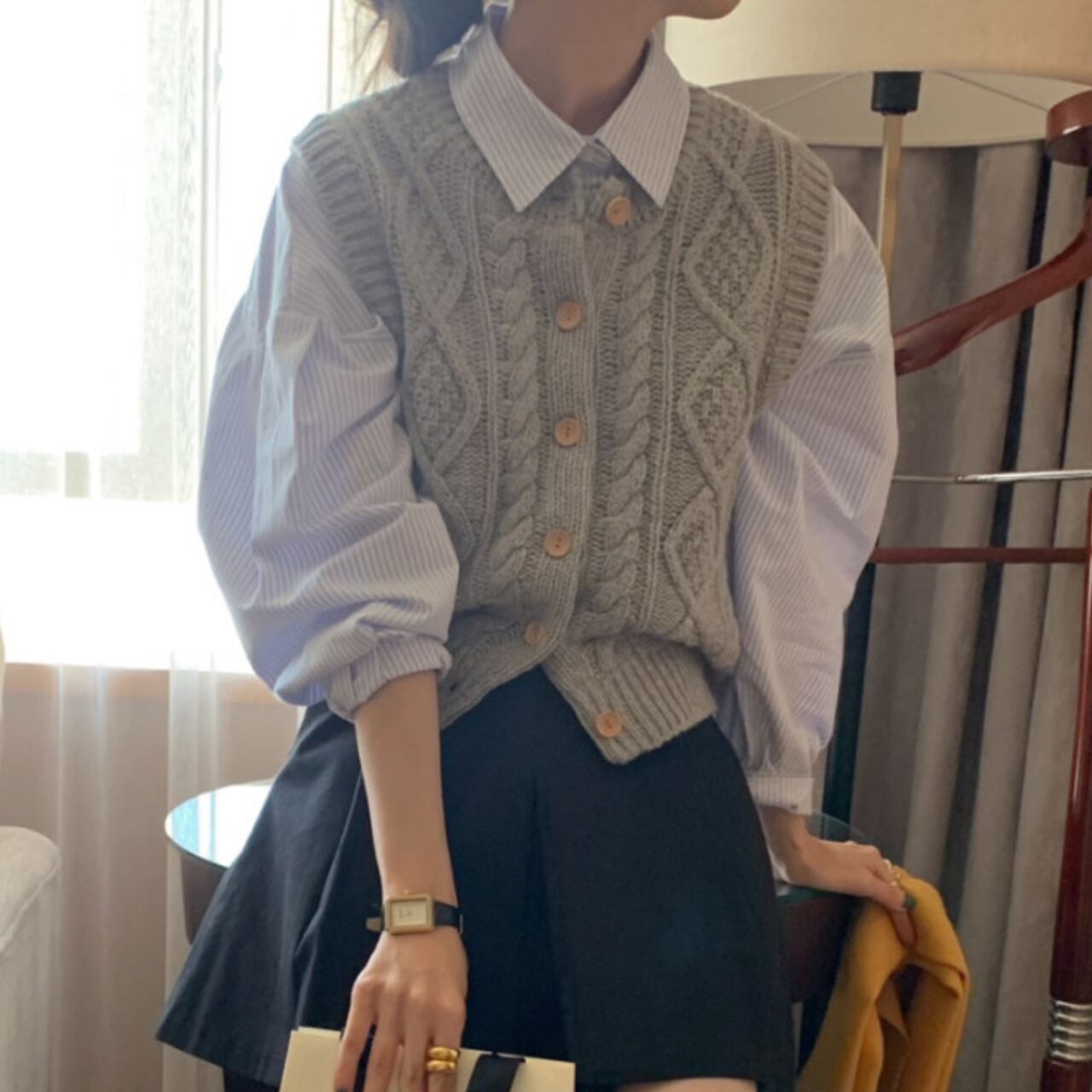 # 韓国風 ウール混 ツイストパターン ニット ベスト
