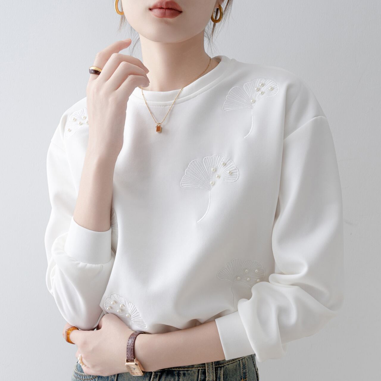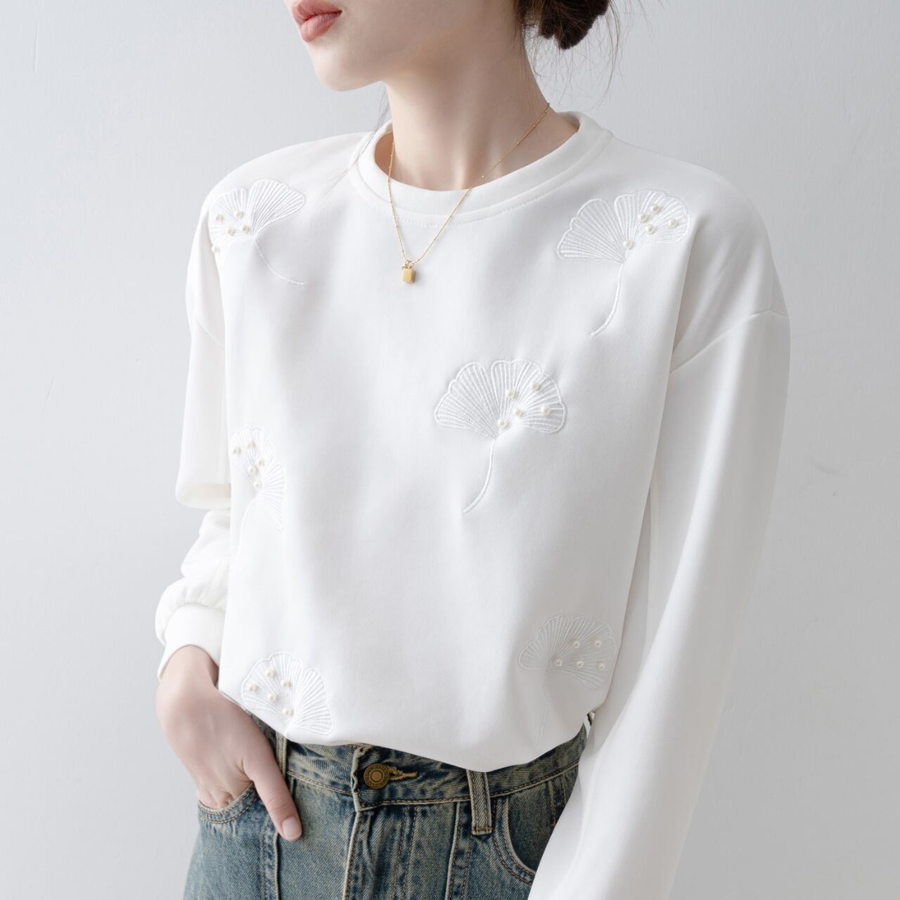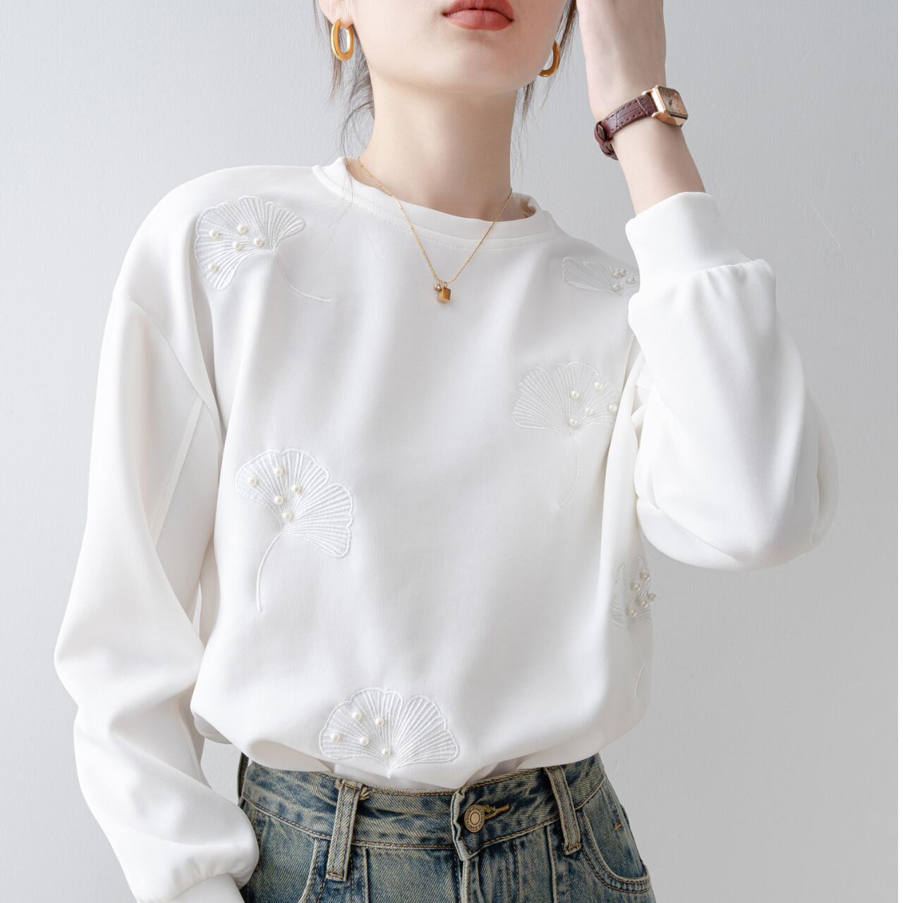 フラワー パール クルーネック プルオーバー トレーナー ホワイト 250357