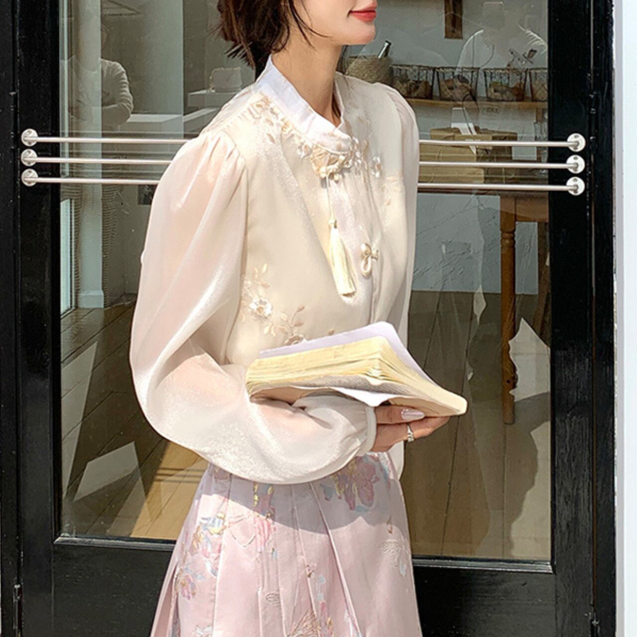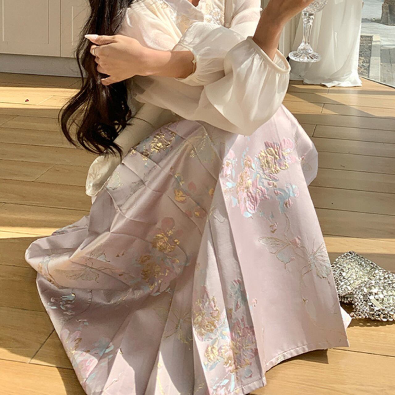 # チャイナドレス 刺繡 ツーピース セット ホワイト ピンク