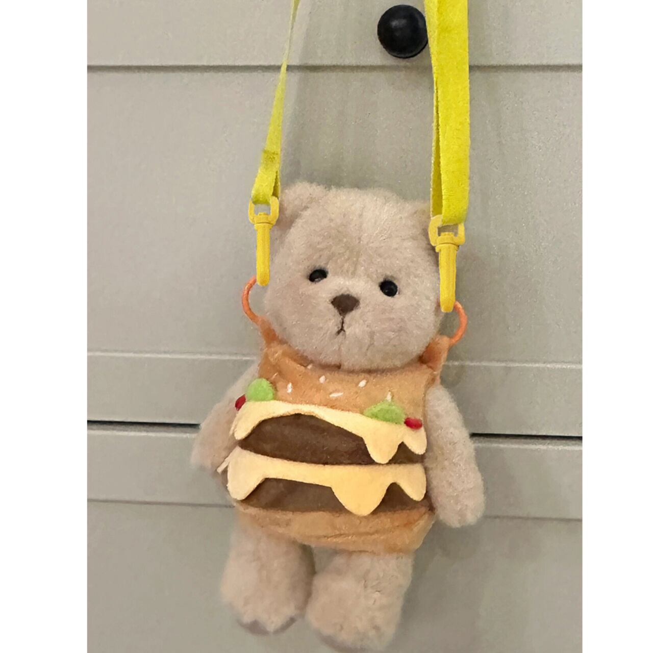 ふわふわのぬいぐるみ素材に、ハンバーガーになっちゃったくまちゃんの愛らしい表情がポイントのスマホポシェット。思わず抱きしめたくなるようなデザインは、コーデの“遊び心”と“癒し”を一気にチャージしてくれる存在です。