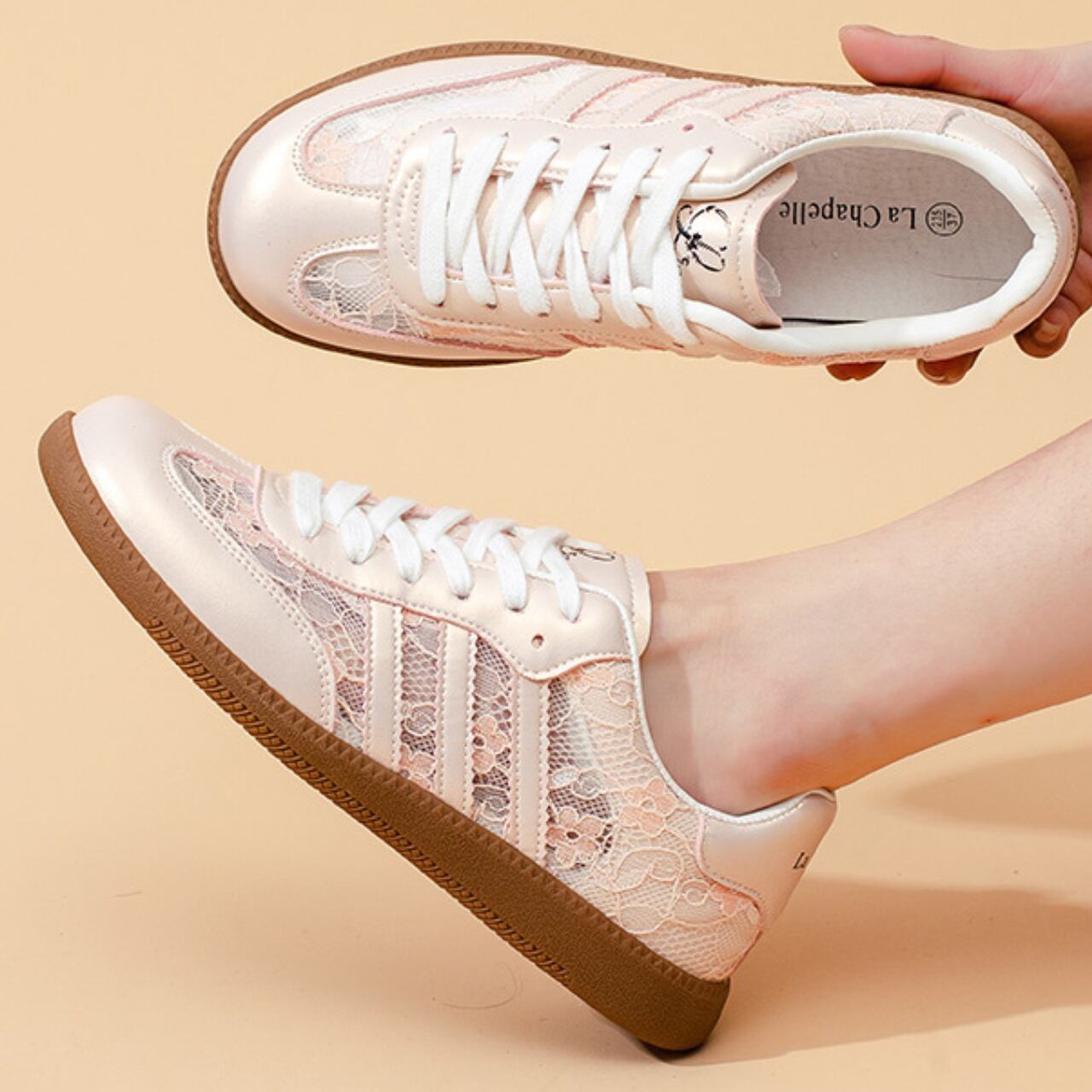 このレース メッシュ スニーカーは、可愛らしいピンクが特徴のアイテムです!軽やかなメッシュ素材が通気性を保持し、快適な履き心地をお届けします。スタイリッシュなデザインは日常のカジュアルなシーンからお出かけまで幅広く活躍し、多様なコーディネートにマッチします。おしゃれを楽しむすべての方々にぜひ体験していただきたい、自信を持ってお届けするスニーカーです。