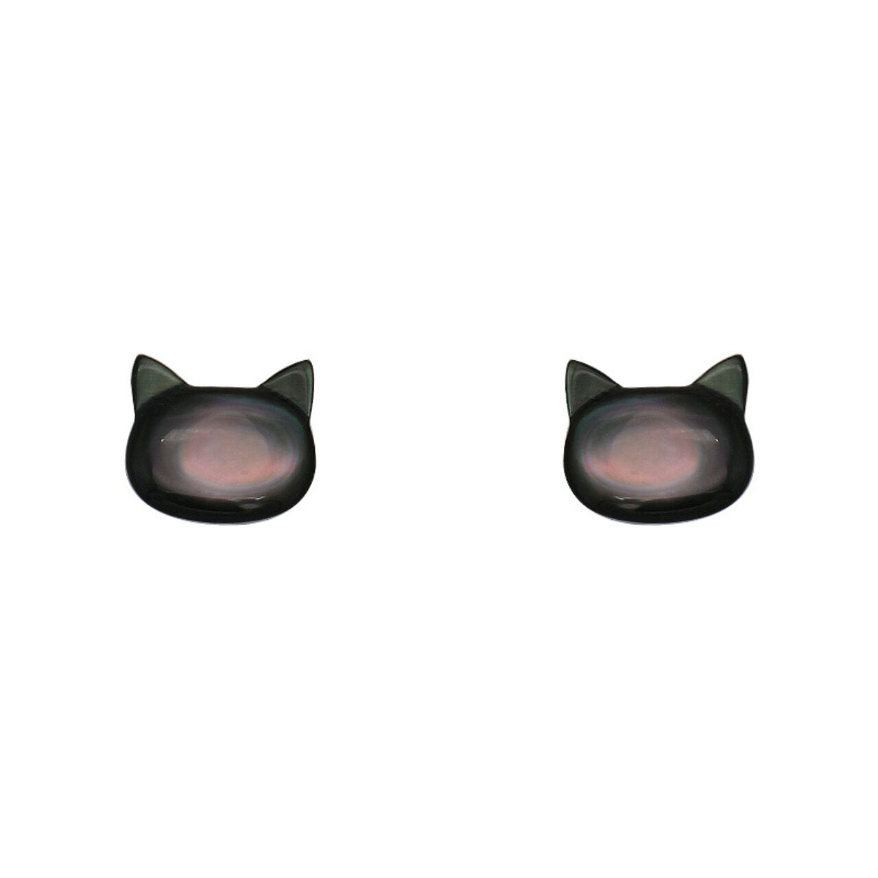 S925 スターリングシルバー シェル ネコ ピアス ホワイト 250447
