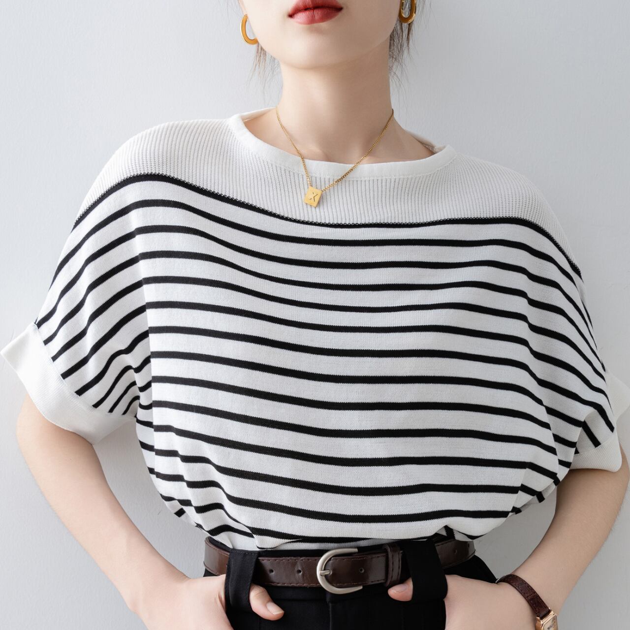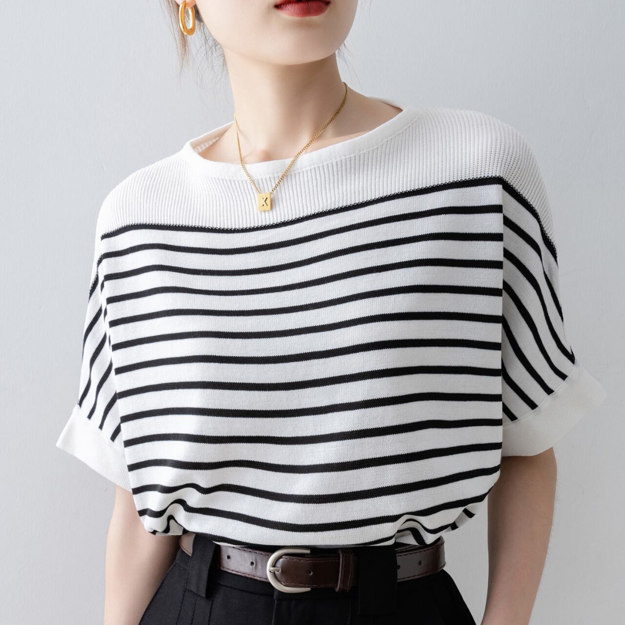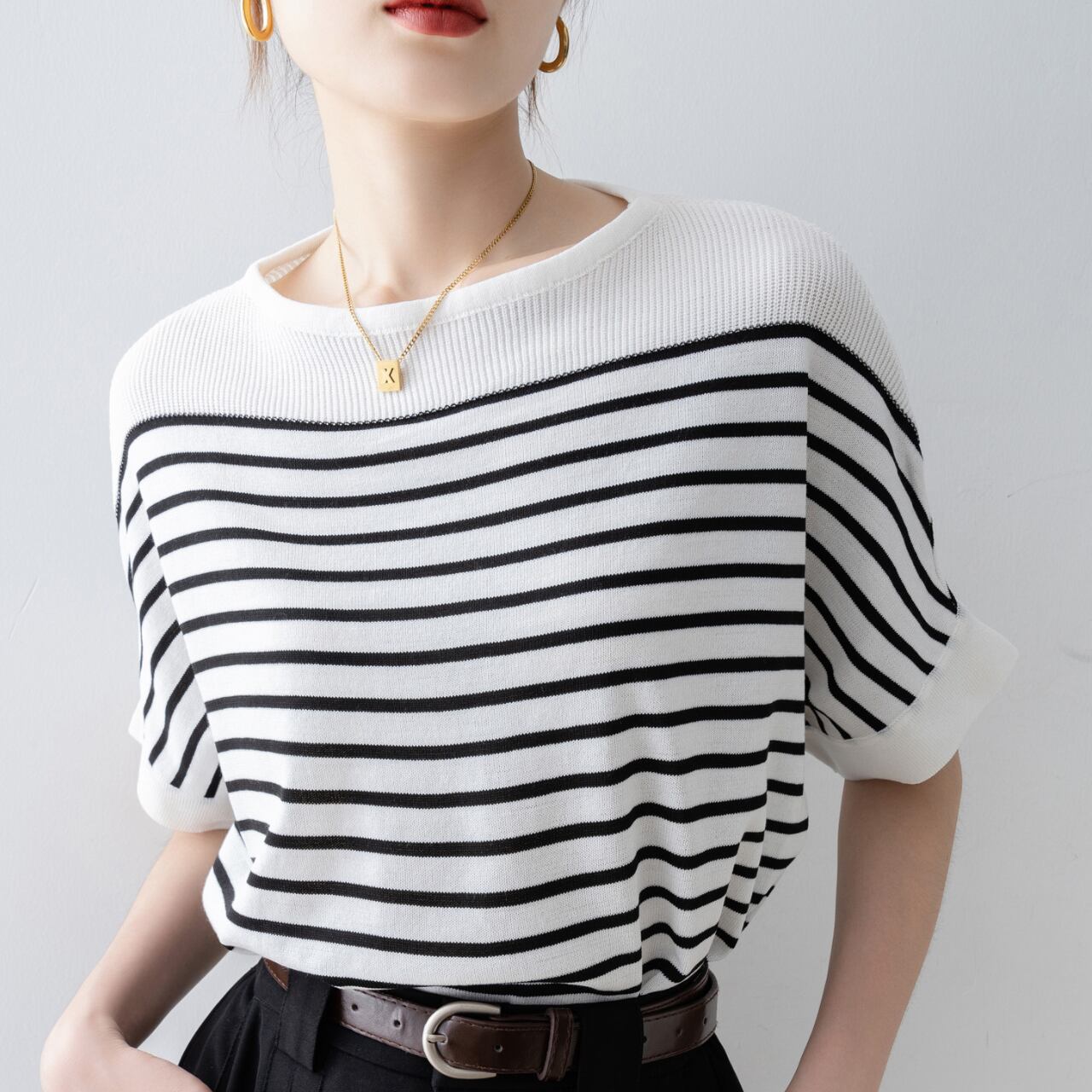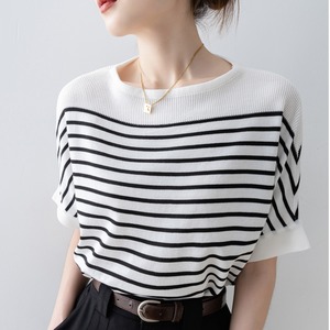 # ボーダー クルーネック 半袖 プルオーバー ホワイト