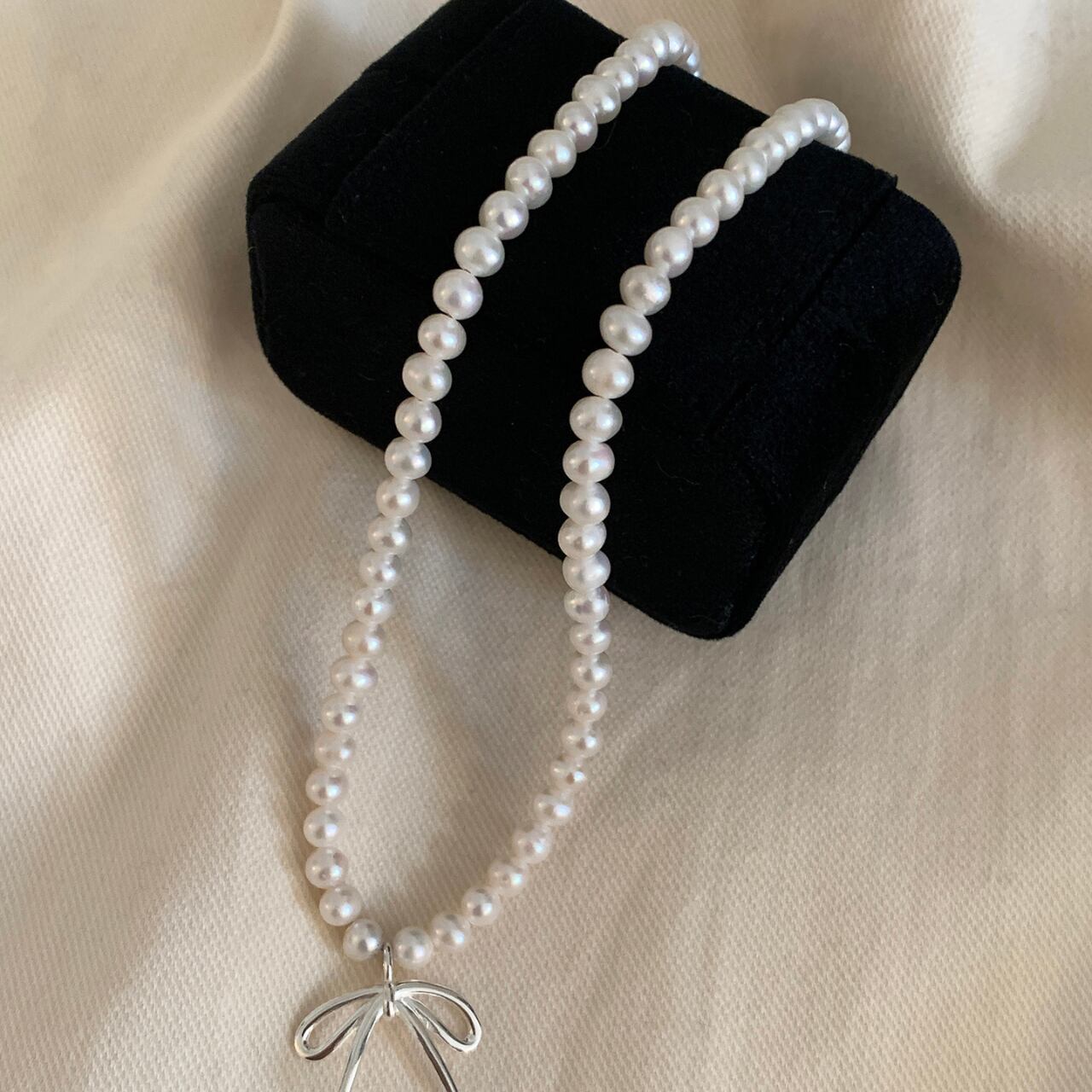 # S925 スターリングシルバー 淡水パール リボン ネックレス