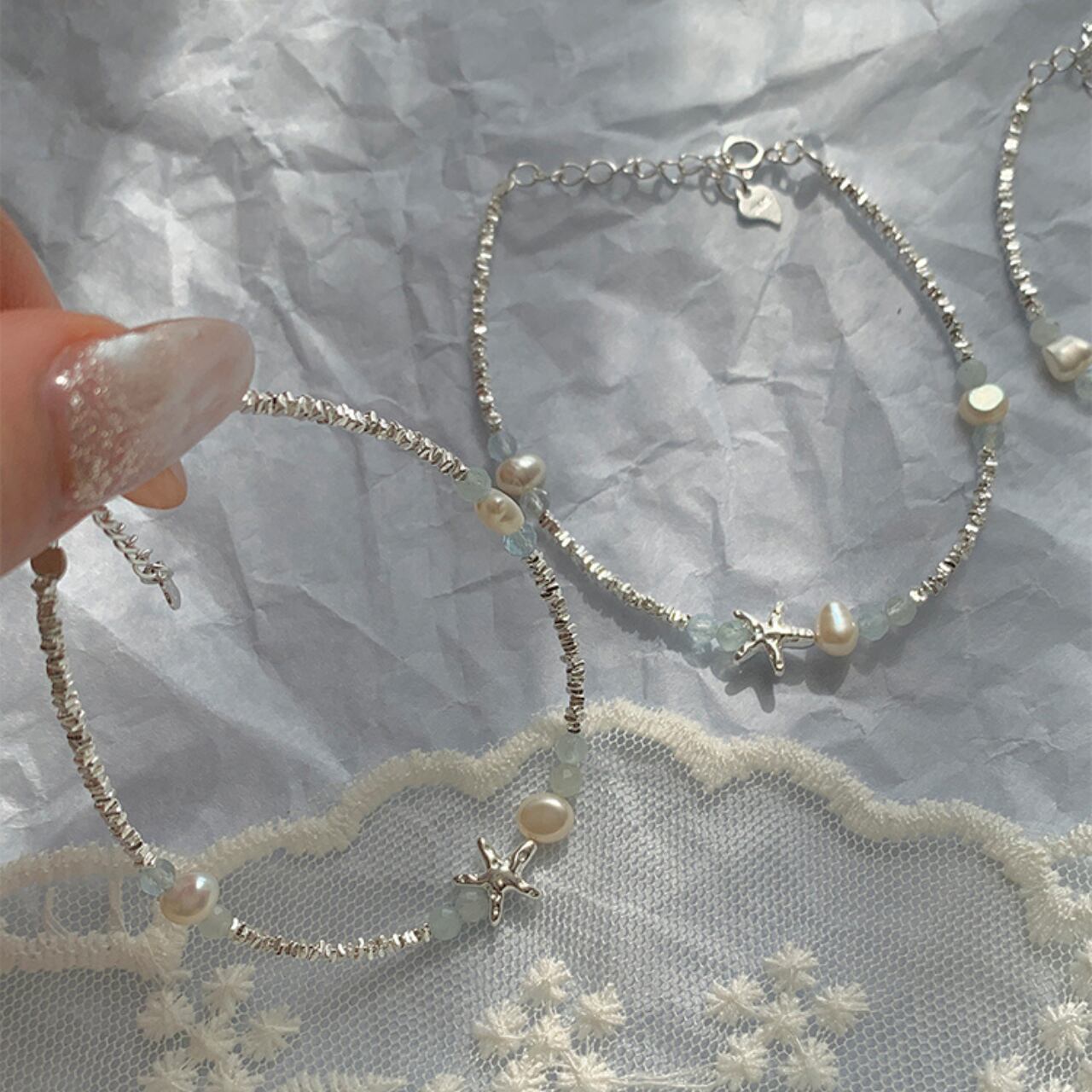 # S925 スターリングシルバー 淡水パール アクアマリン スターフィッシュ ブレスレット