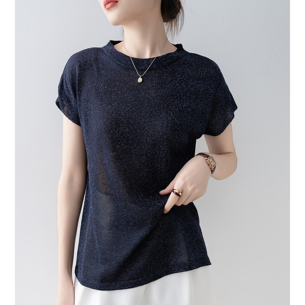 ラメ入り Tシャツ ラウンドネック ネイビーブルー 250461