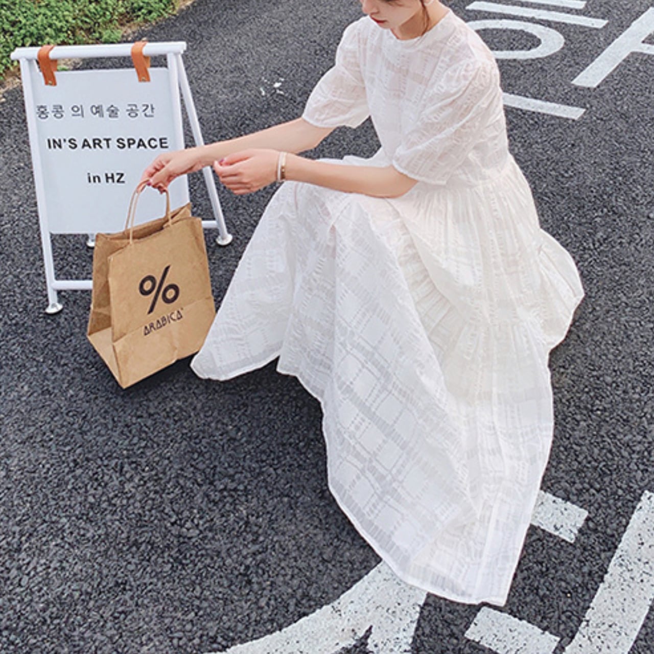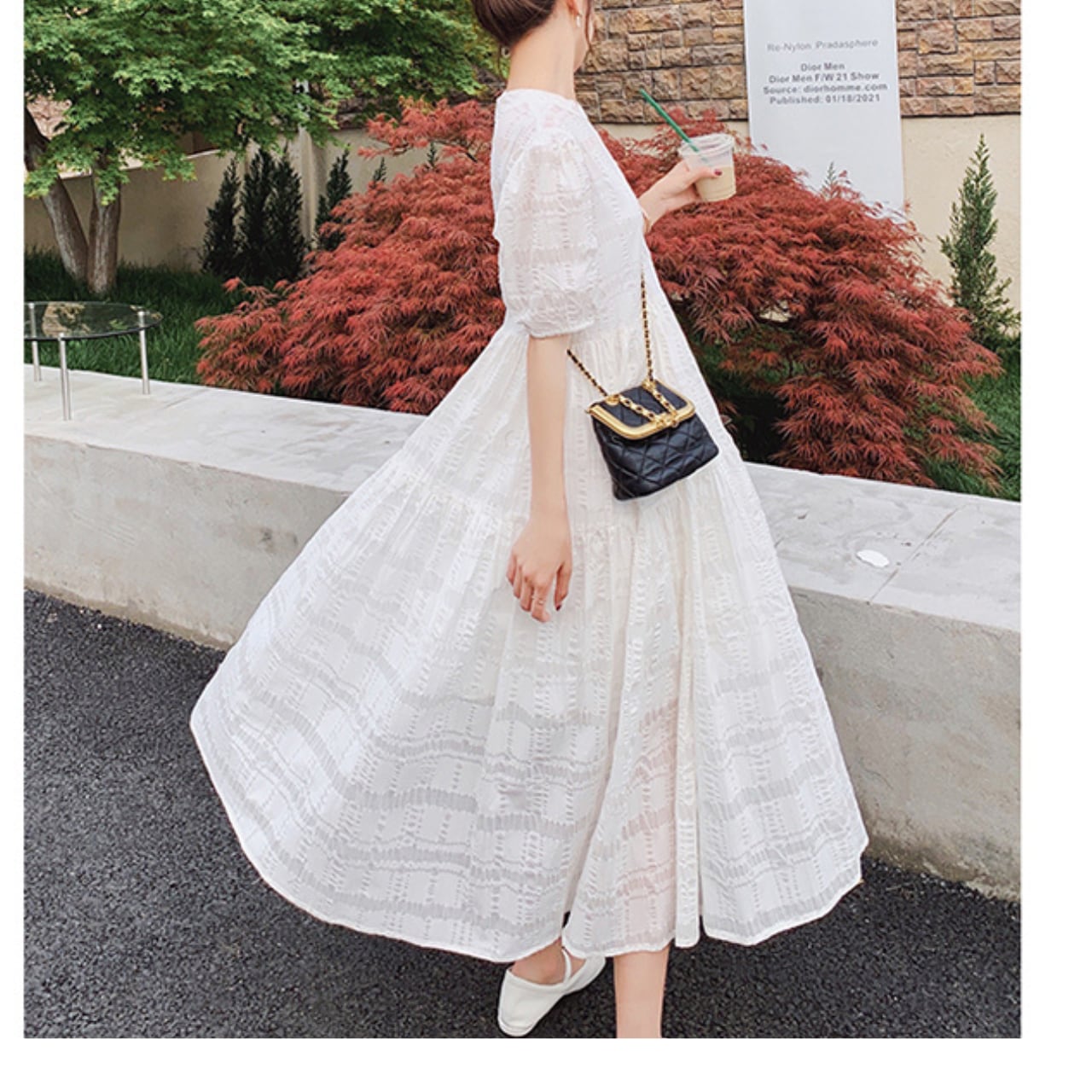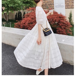 # ふんわり 夏 ワンピース デート ホワイト パフスリーブ チェック シアー