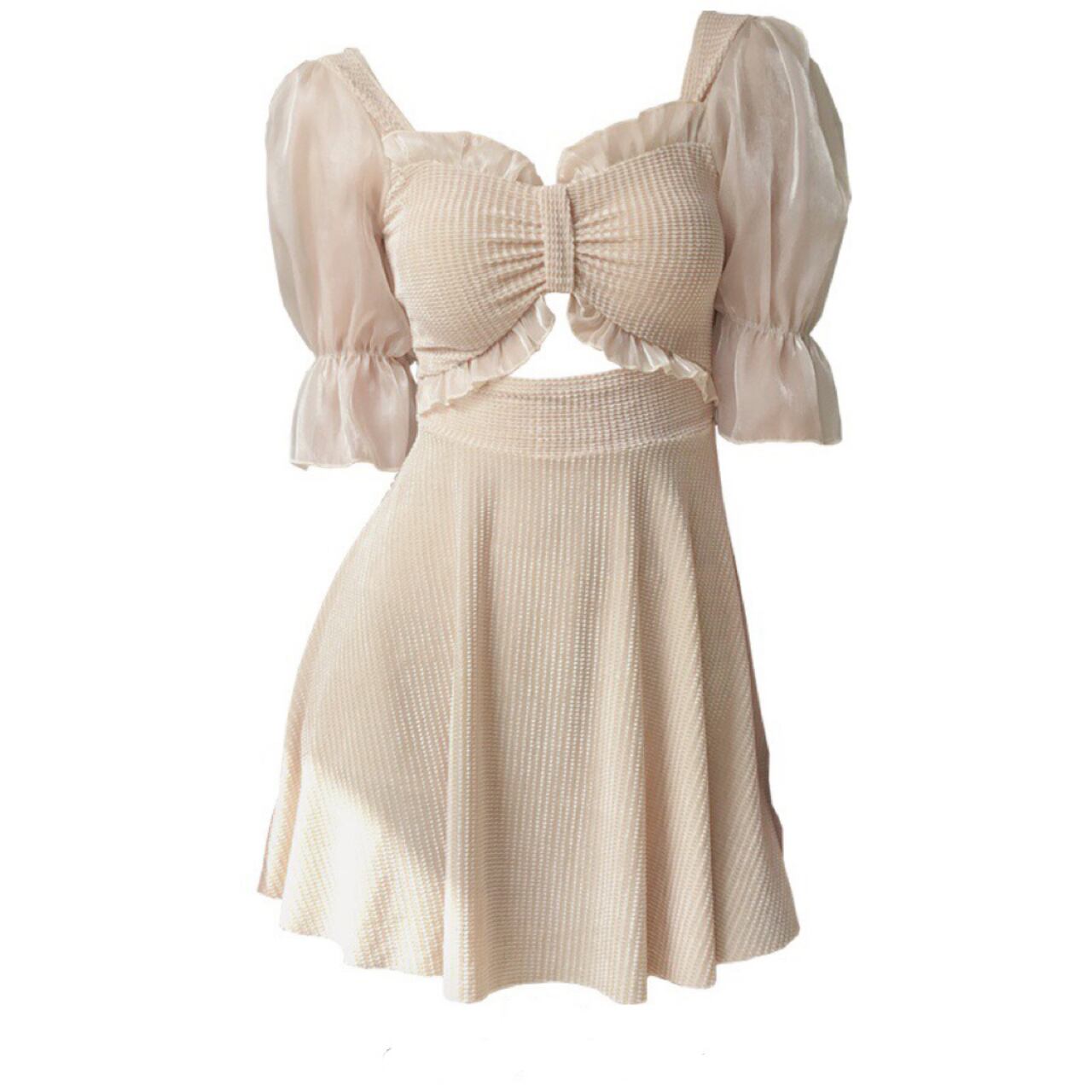 # 水着 リボン シフォン フリル ワンピース スイムウェア ライトベージュ