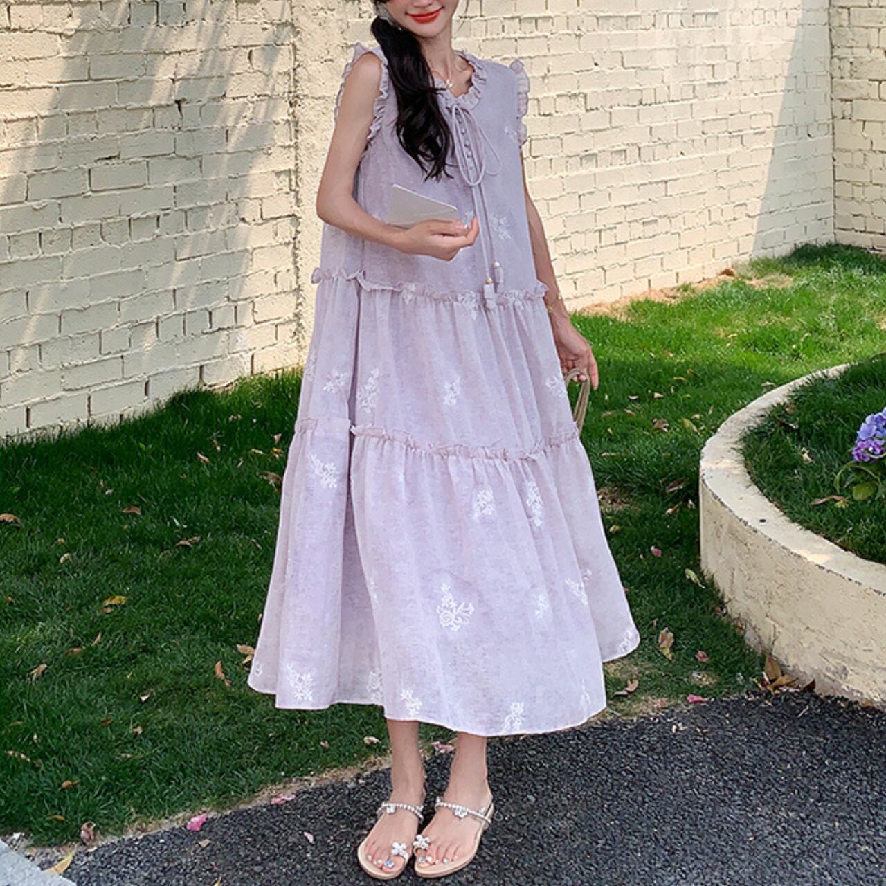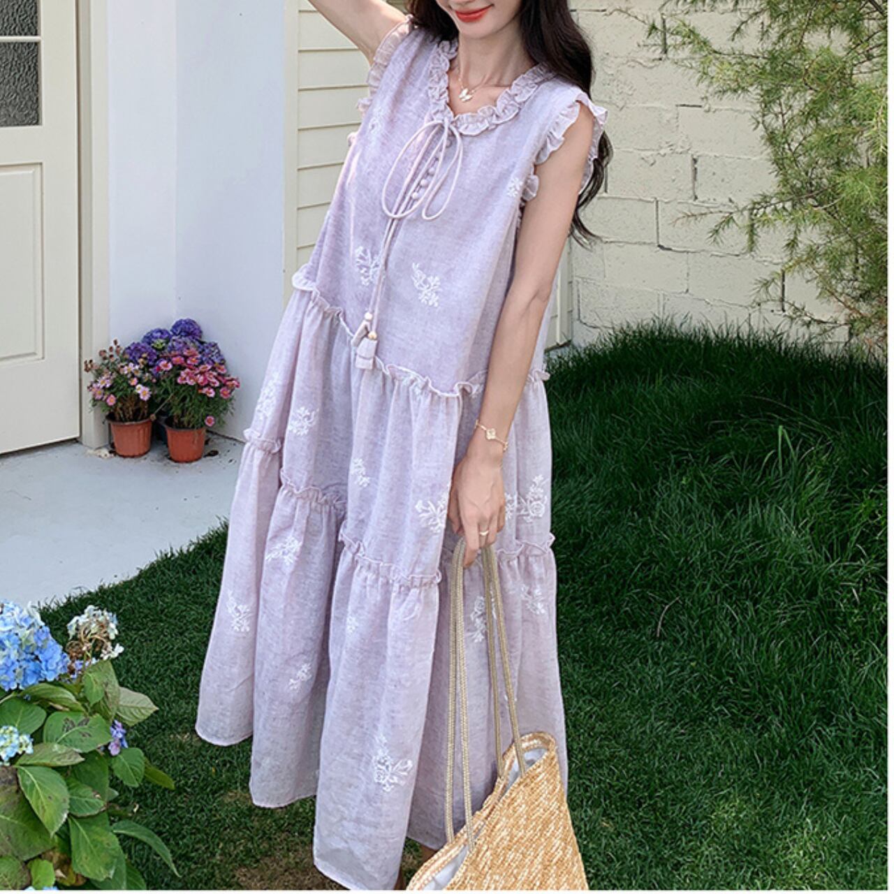 大人フェミニン ラベンダーワンピース ノースリーブ 夏 レディース 250512