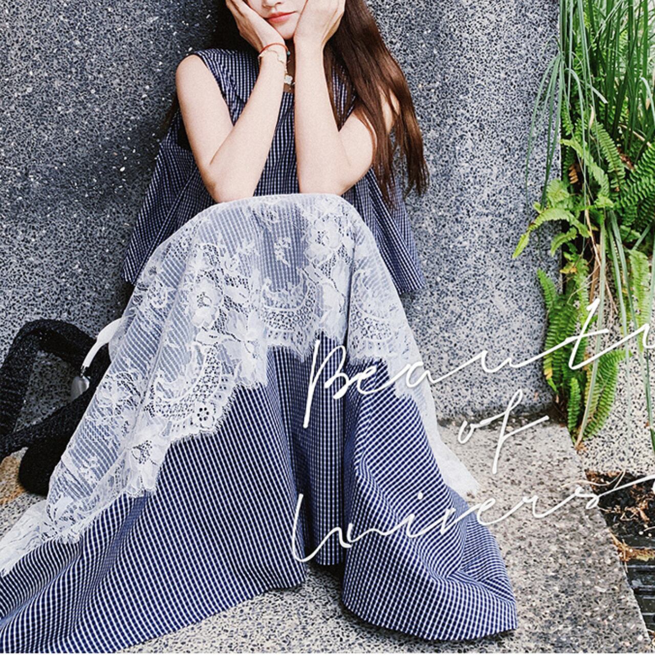 軽やかなレースのディテールが加わり、エレガントながらもカジュアルな雰囲気を演出します。