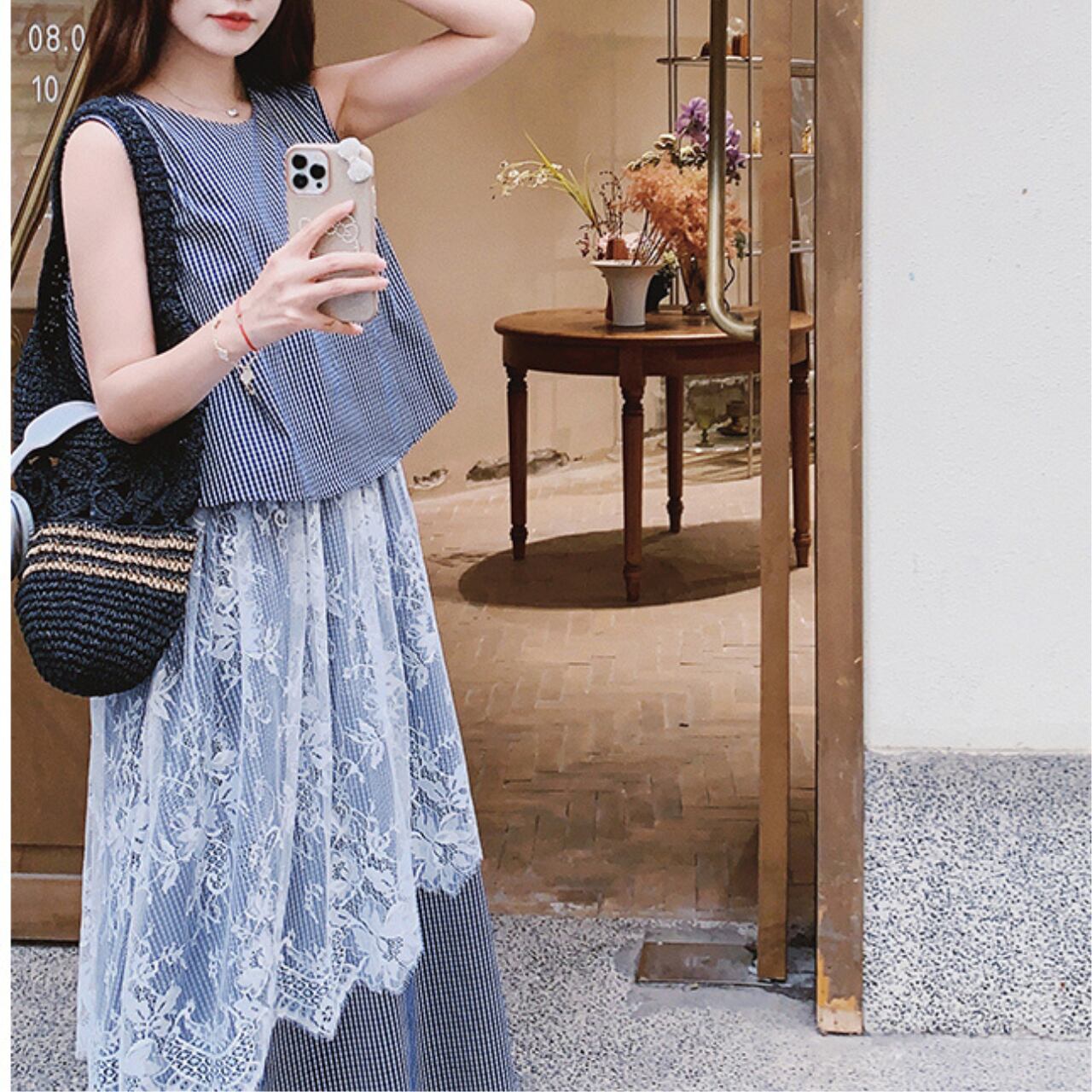 # ストライプ レース ノースリーブ ワンピース ブルー×ホワイト 250516