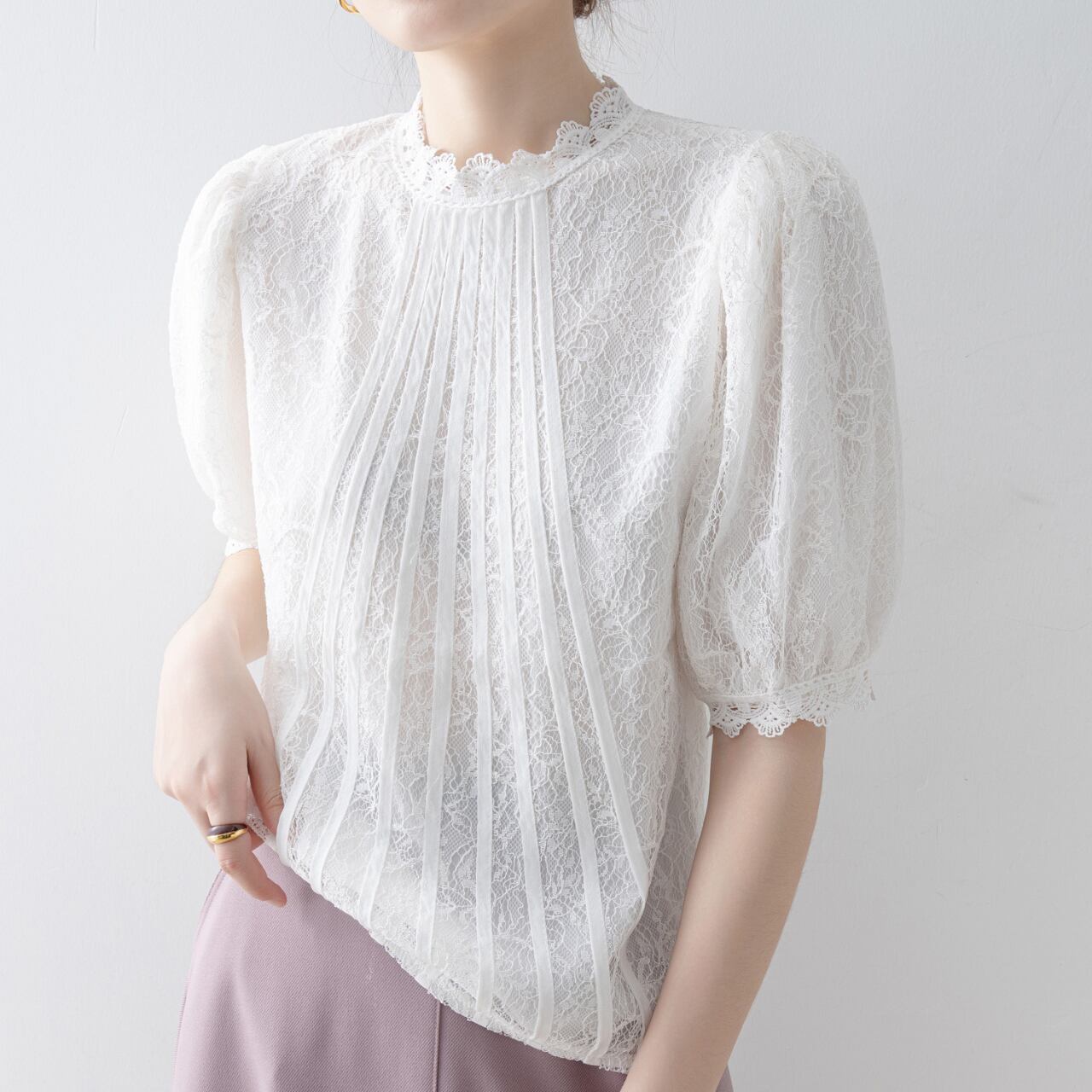 レース 半袖 ランタンスリーブ ブラウス ホワイト 250537