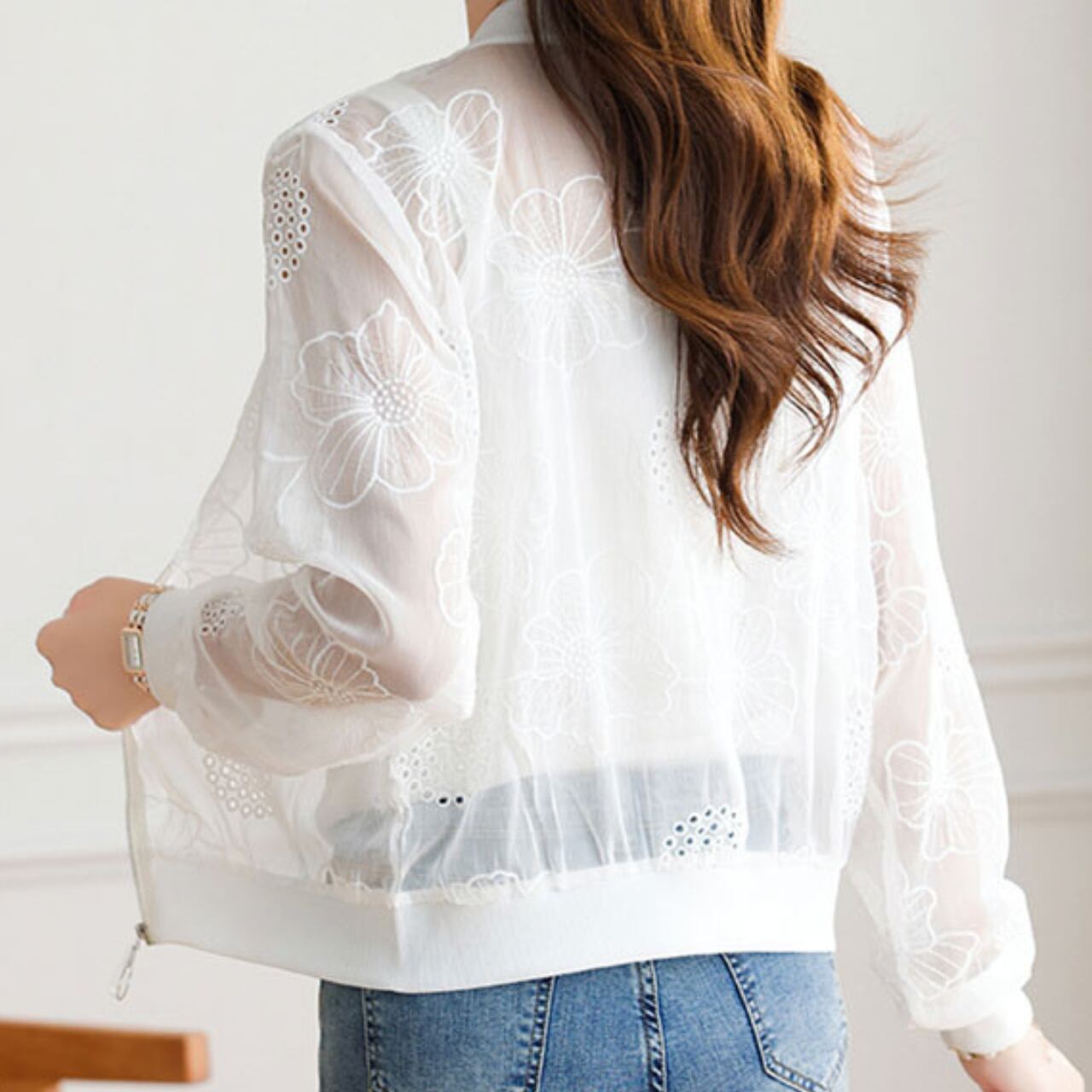 可憐なフラワーモチーフがあしらわれたシフォンジャケット。