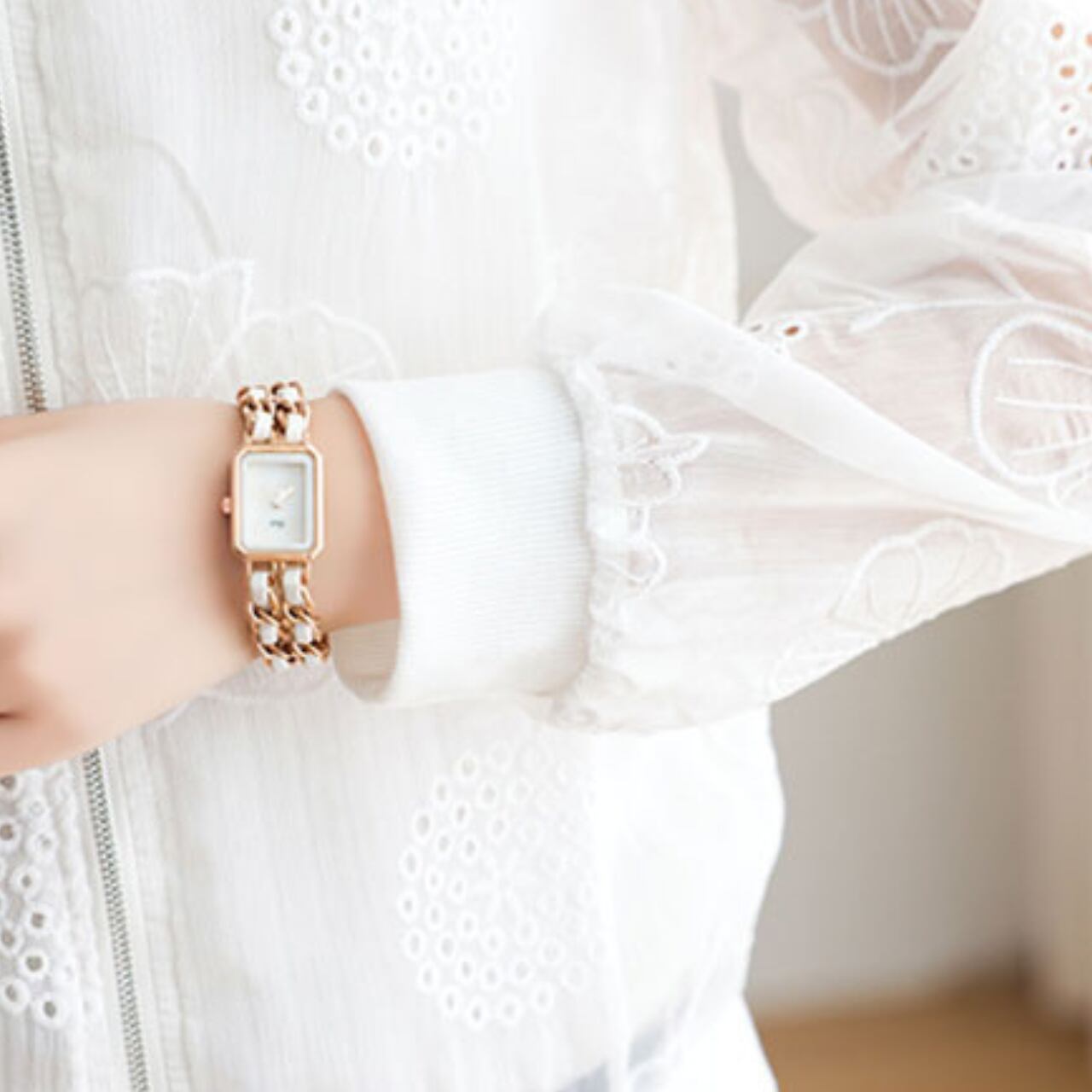 ホワイトの清潔感溢れるデザインは、さまざまなコーディネートに合わせやすく、デイリーから特別な日まで幅広く活躍する一着です!