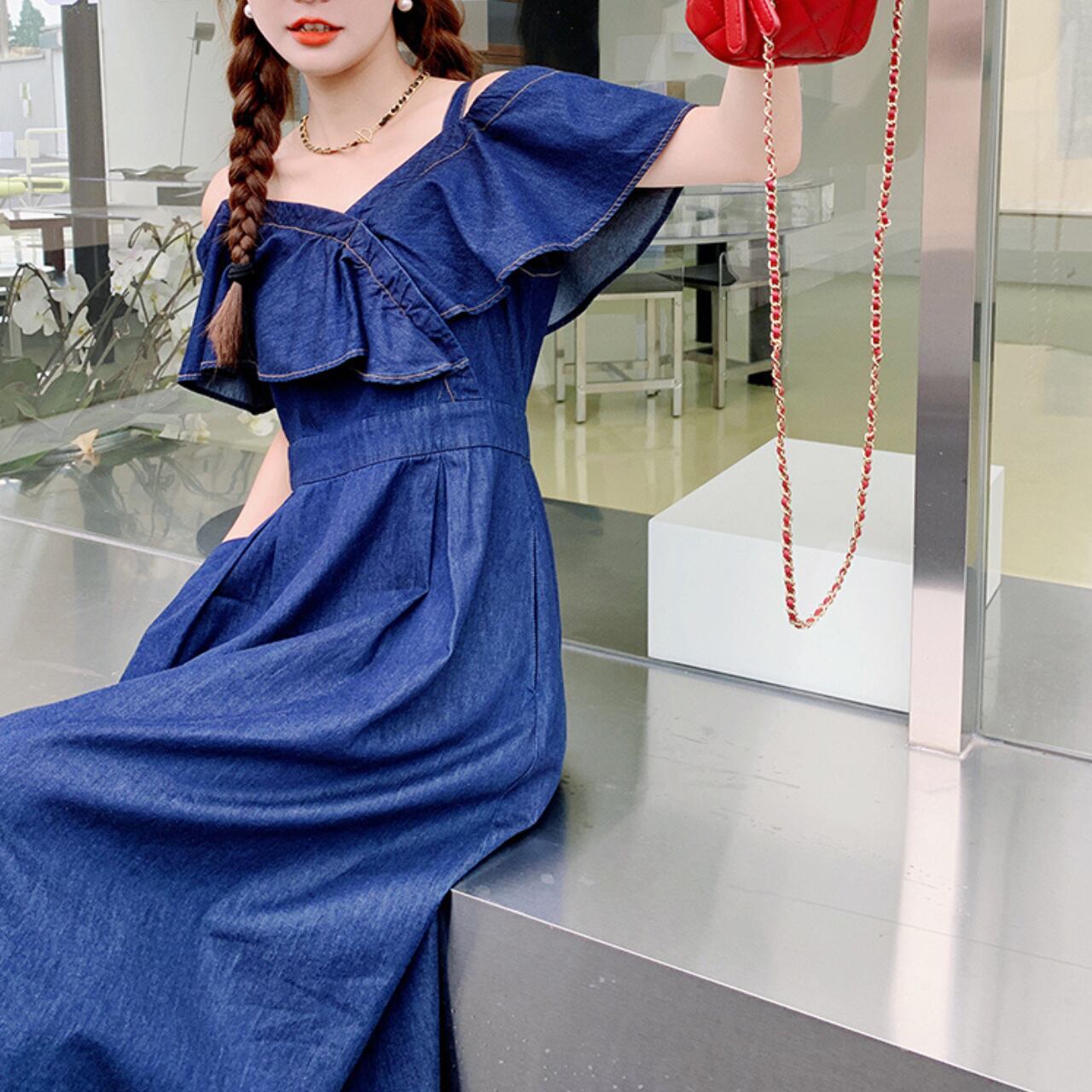 フリル デニム オフショルダー ワンピース ブルー 250561