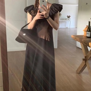 愛らしいフリルデザインが特徴のノースリーブワンピース。