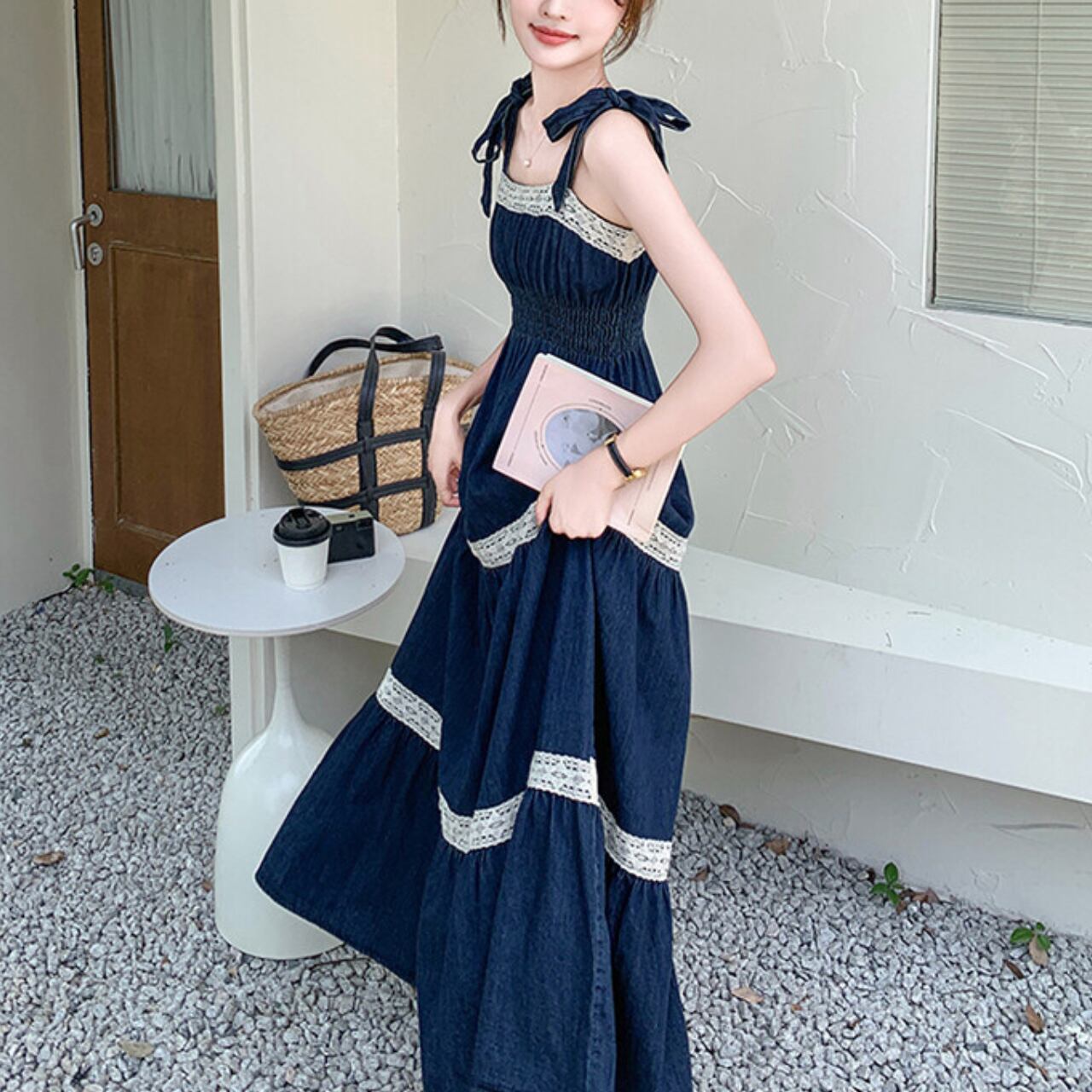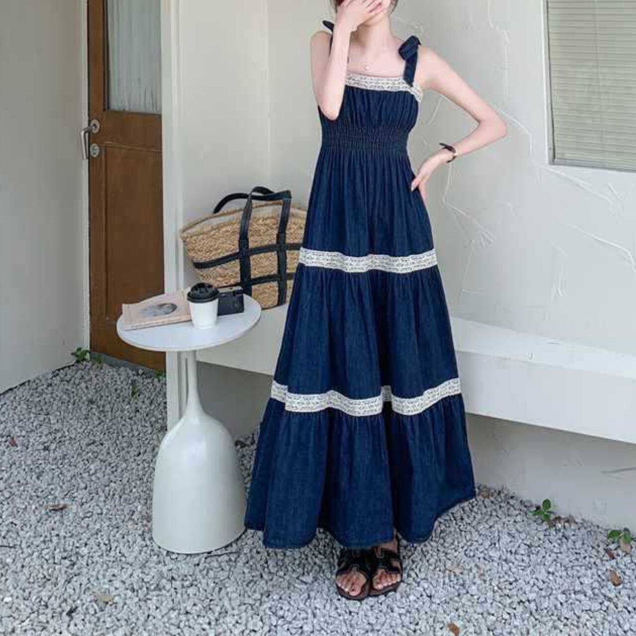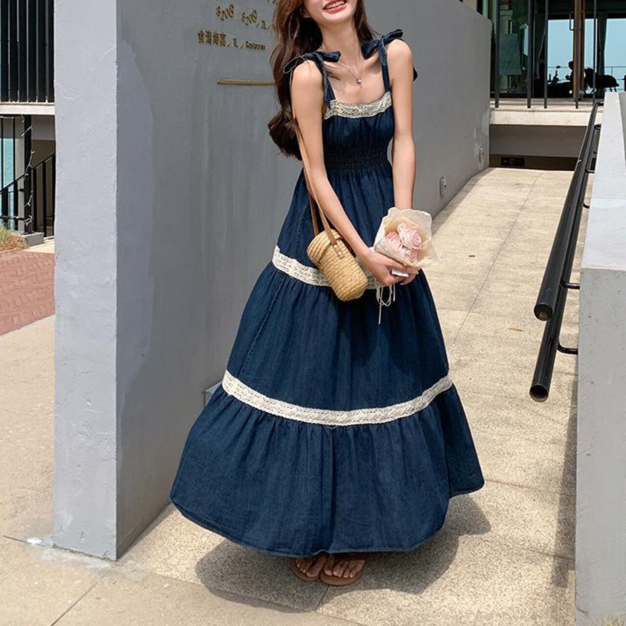 おしゃれな肩リボンがポイントのデニムワンピース。