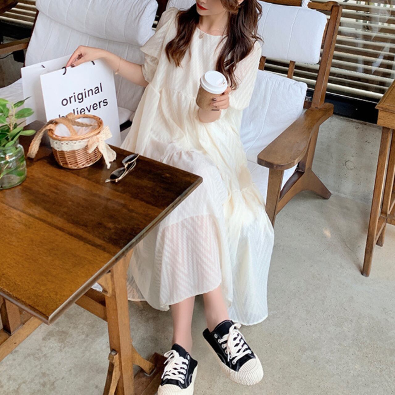 ふんわり広がるティアードデザインが、気になる体型を優しくカバーしつつ、リラックス感ある着心地を叶えます。