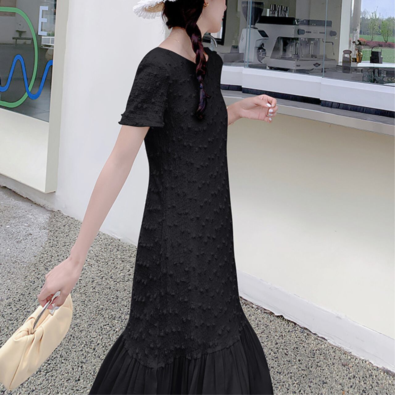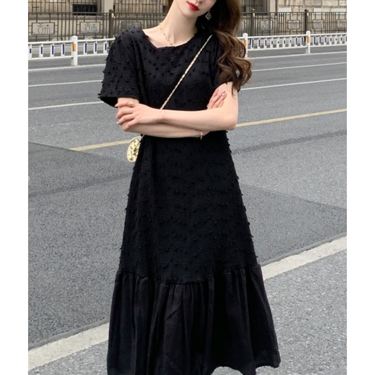 シフォン ドット スカート 切り替え ワンピース ブラック 250577