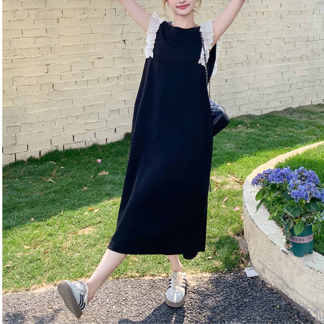 フリル ノースリーブ ワンピース ブラック×ホワイト 250578