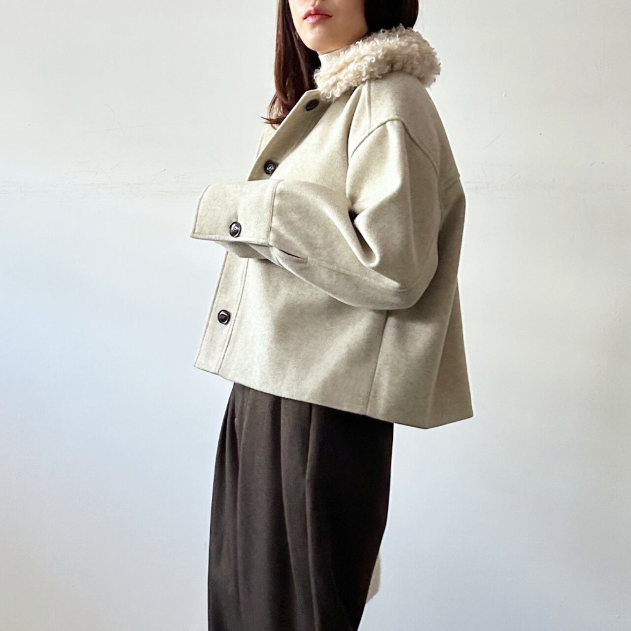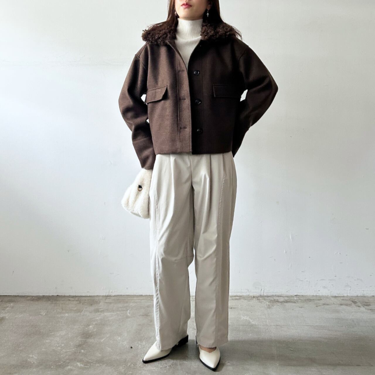 トレンドの「ショート丈」×「異素材ファー」で、いつものコーデを即アップデート。 首元のファーが顔まわりを華やかに見せつつ、小顔効果も叶えてくれる一着です。