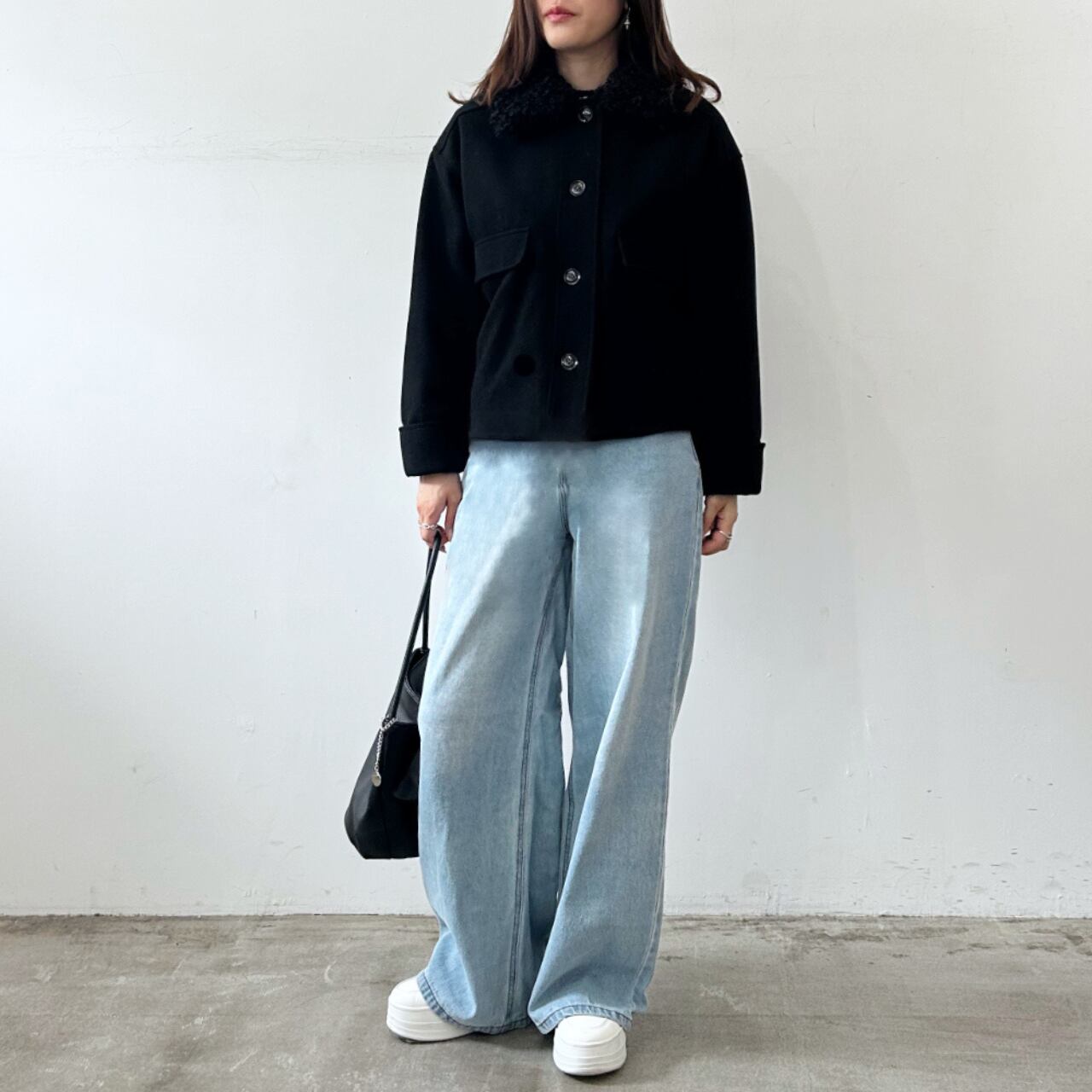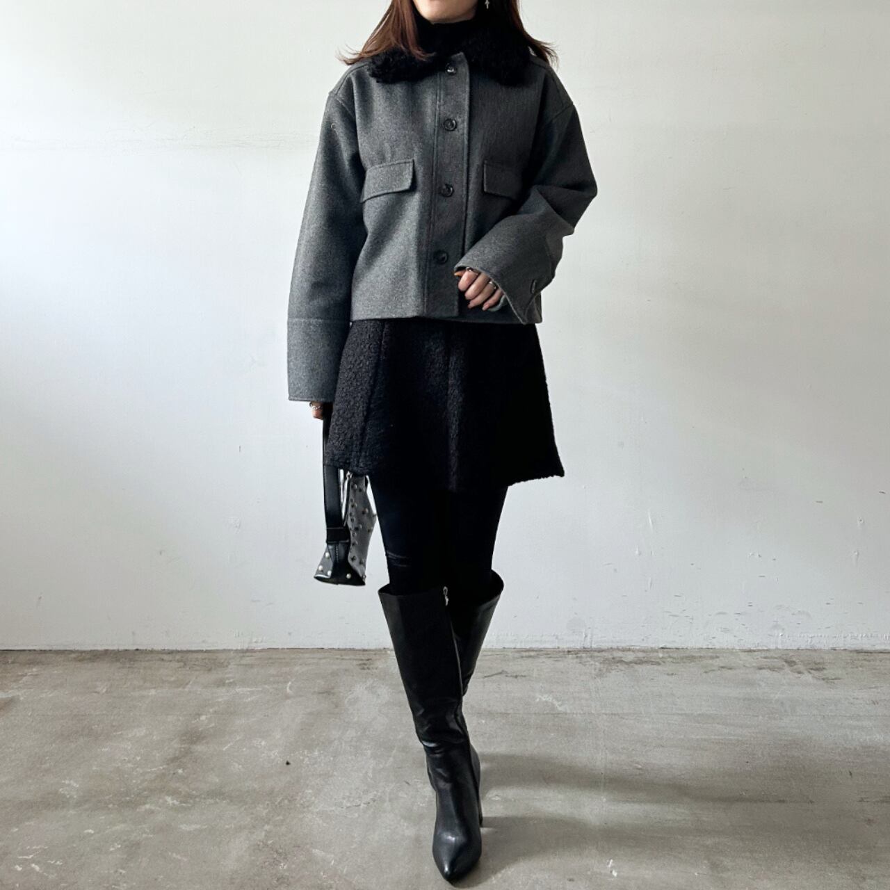 ボクシーなシルエットなので、厚手のニットの上からでも羽織りやすく、冬本番まで大活躍。 ミニ丈ボトムス×ロングブーツと合わせた「韓国っぽ」スタイルはもちろん、ワイドパンツやロングスカートともバランスよく決まります。