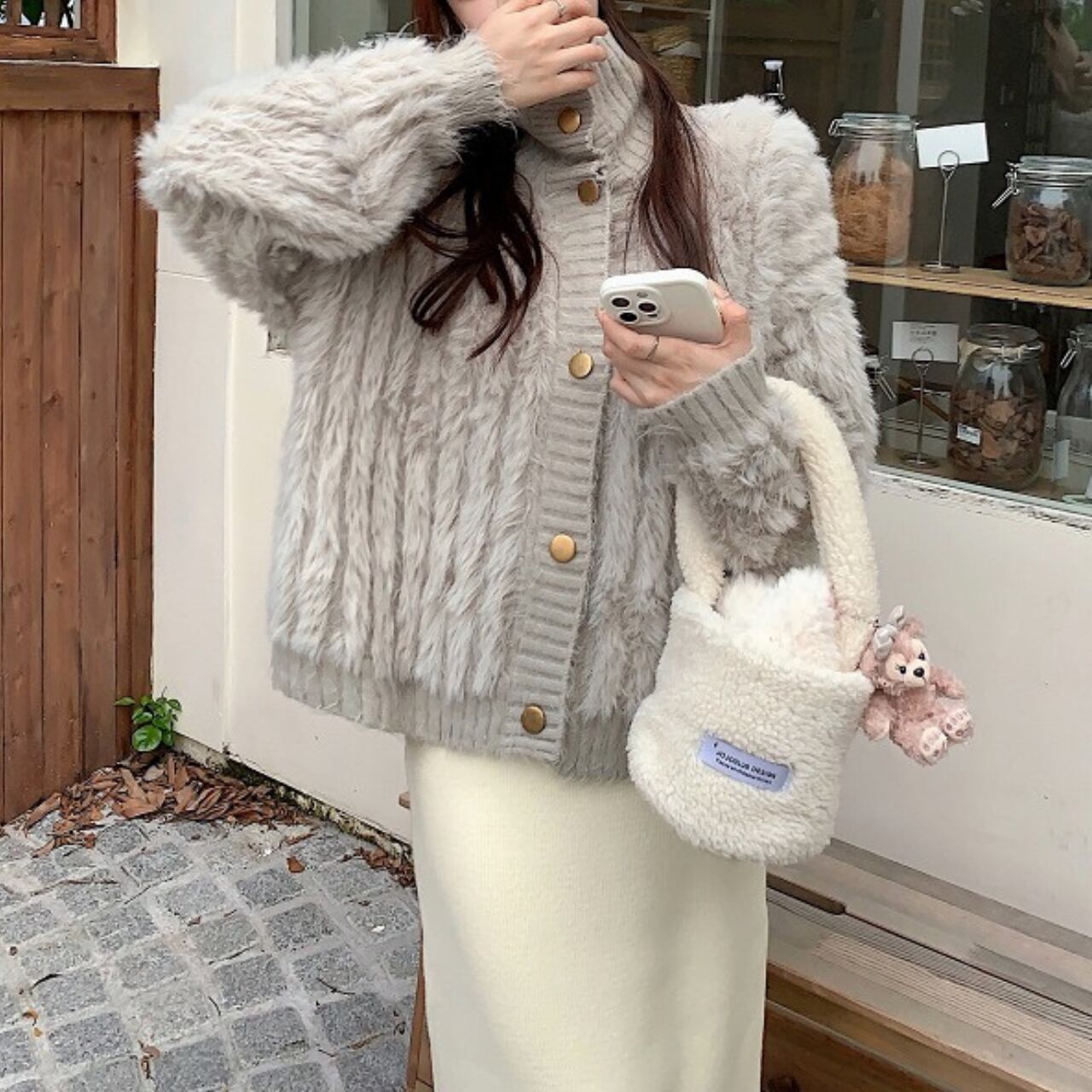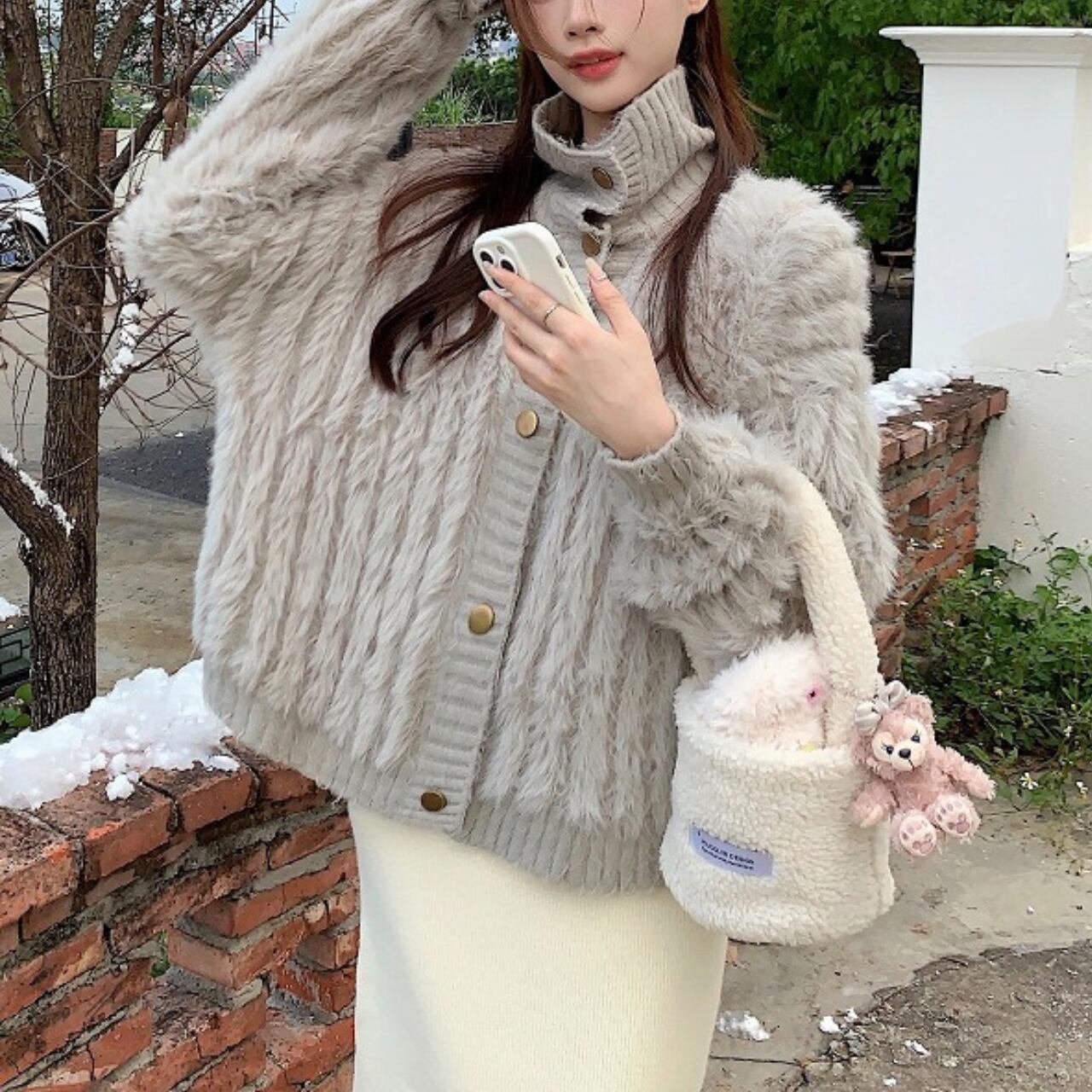 シックなグレーがどんなスタイルにも合わせやすく、落ち着いた印象を与えてくれます。ふわふわのファーが寒い季節にもしっかり対応し、あなたのスタイルに温かみをプラスしてくれます♡