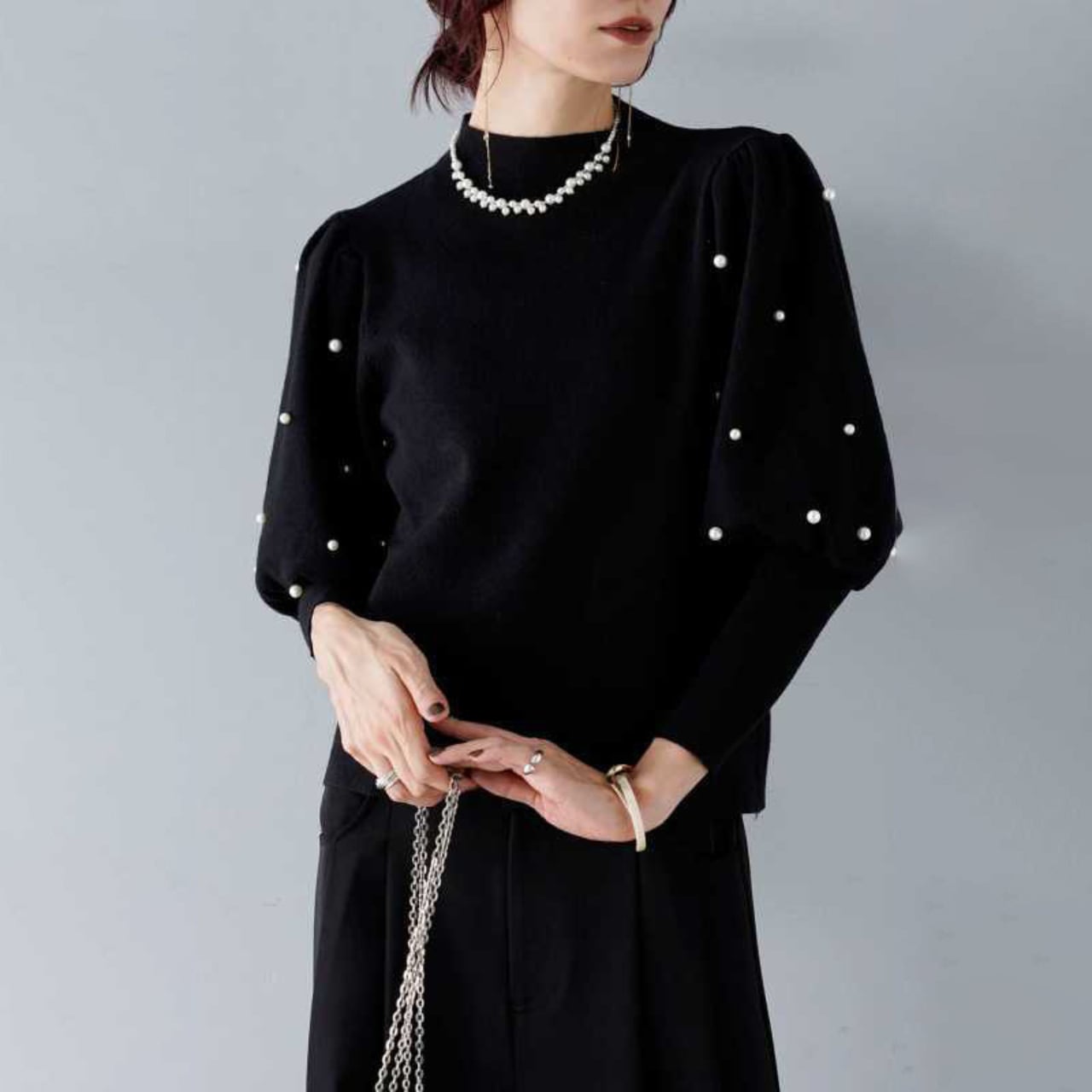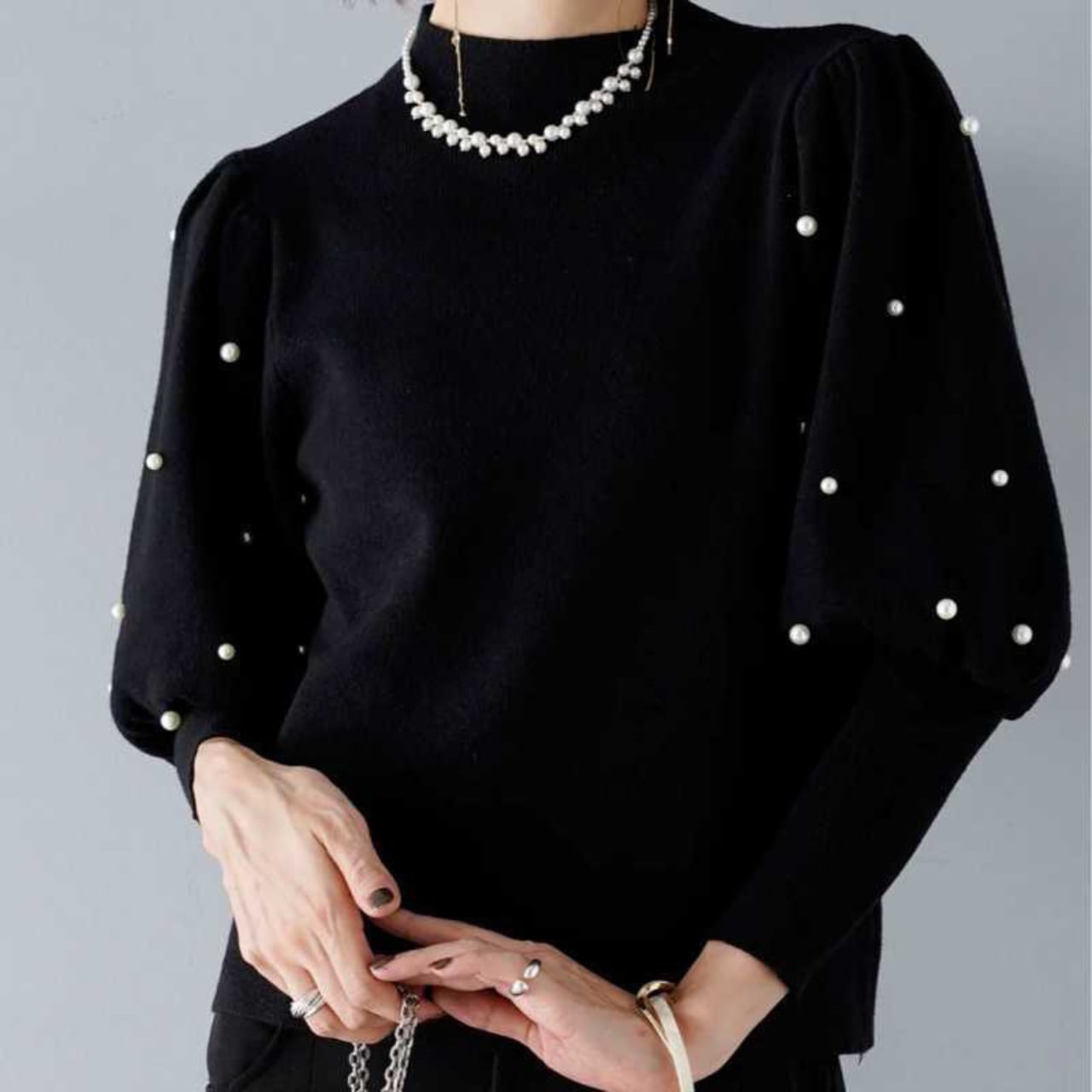 上品なセミハイネックデザインが魅力のパールセーターが新登場!